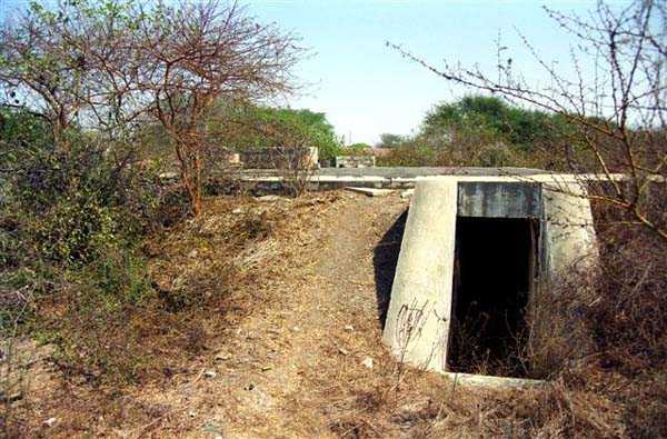 Dakar. C’est une des deux survivantes des cinq batteries de 138 Mle 1924 construites autour de Dakar, entre 1940 et 1942. Les trois autres ont été conquises par l’urbanisation. L’autre survivante étant celle du Cap des Nazes. Mais cette position se trouve assez loin de Dakar, vers Poponguine. Le cap des Biches se trouve à 3 kilomètres à l’ouest de Rufisque. La batterie, construite sur un site déjà occupé par l’artillerie coloniale, comme en témoigne un bel insigne en béton daté de 1939, comporte 4 cuves bétonnées avec niches à munitions attenantes. On compte également un abri à projecteur et quelques blockhaus de défense rapprochée. Un foyer de charité occupe le site, ce qui l’a sans doute préservé. Il est malgré tout défiguré par des constructions diverses, et seule une des cuves est encore présentable. JJM 10/08/2008