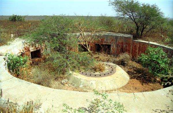 Dakar. This battery is located on the small coast between Poponguine and Somone, about sixty kilometres from Dakar, in a wild and very isolated site. It is a late construction, as the only trace we have found of it in the archives is a report by Rear Admiral Marzin dated 27 December 1941 requesting its construction. It was therefore built in 1942, like others built on the Saloum River, and certainly put into service shortly before the landing in North Africa, followed by the colony's return. The battery's mission is to prevent a landing on the region's long beaches, which are very favourable for an attack. It consists of 4 concreted pits for 138 Mle 1924 guns, a command post (fire direction post) and a few buildings for various purposes, completely ruined today. These are spread out in a deep thalweg running parallel to the rear of the position. The whole was built economically. It is a semi-fixed battery, according to the terminology of the time. JJM 10/08/2008