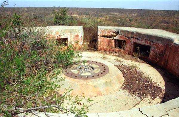 Dakar. Cette batterie est située sur la petite côte, entre Poponguine et Somone, à une soixantaine de kilomètres de Dakar, dans un site sauvage et très isolé. C’est une réalisation tardive, car la seule trace que nous en ayons trouvée dans les archives est un compte-rendu du contre-amiral Marzin, du 27 décembre 1941, qui demande sa réalisation. Elle a donc été construite en 1942, comme d’autres réalisées sur le fleuve Saloum, et certainement mise en service peu de temps avant le débarquement en Afrique du Nord, suivi du ralliement de la colonie. La mission de la batterie est d’interdire un débarquement sur les longues plages de la région, très favorables à une attaque. Elle se compose de 4 cuves bétonnées pour canon de 138 Mle 1924, d’un P.C.T. (poste directeur de tirs) et quelques bâtiments à usage divers, complètement ruinés de nos jours. Ceux-ci sont répartis dans un profond thalweg qui court parallèlement à l’arrière de la position. L’ensemble a été réalisé à l’économie. C’est une batterie semi-fixe, suivant la terminologie de l’époque. JJM 10/08/2008