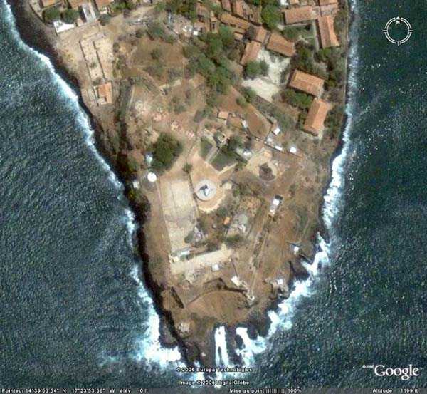 Gorée. Naar Gorée gaan en de Castel niet bezoeken is een vergissing, zelfs als men geen vestingbouw-enthousiast is. Veel toeristen maken hem, geabsorbeerd als zij zijn door de ontdekking van de verplichte routes van reisorganisatoren, het slavenhuis, het historisch museum van Fort d'Estrées enz.… Spijtig, want de Castel van Gorée is een buitengewone verdichting van de Franse, moderne en hedendaagse vestingbouw. Sinds 1837, de datum van het begin van de bouw van het vijfhoekige fort, is hij tot 1942 onophoudelijk aangepast en gewijzigd aan de evolutie van de artillerie en de marine. Eigenlijk is het maar goed dat toeristen minder aangetrokken worden door de overblijfselen van de gevechten van 1940, dan door de twijfelachtige charmes van de massatoerisme-attracties. Dat laat de amateur meer tijd om zijn passie te bevredigen. En om, zoals de artilleristen van het 6e RAC, op de melodie van de Paimpolaise te zingen: Ik houd van Gorée en zijn klip, zijn Castel en zijn grote kanonnen… Begonnen in 1837 zonder veel strengheid, zal de bouw van het vijfhoekige fort, bestemd om Fort Saint-Michel te vervangen, tot 1846 voortgezet worden. Reeds in 1838 klaagt de voor het werk verantwoordelijke kapitein van de Genie dat de werken uitgevoerd worden zonder vastgelegd plan en zonder ministeriële goedkeuring. In 1844 bekritiseren de prins van Joinville, zoon van Louis-Philippe, alsook verschillende officieren, de opvatting van het fort, in het bijzonder zijn van ver zichtbare hoge muren. In feite vinden zij enkel gebreken aan dit werk, uitgerust met 5 bastions. Hun kritieken worden niet in aanmerking genomen door het comité van de Fortificaties, en voltooid wordt het bewapend met 30 kanonnen en kanonhouwitsers van 30 en 50. Weinig verbeteringen worden aangebracht, behalve aan de bewapening die in 1870 23 getrokken 16 cm kanonnen omvat, die slechts verbeterde 30 cm kanonnen zijn. In 1868 wordt een project voor de installatie van een gepantserde toren voor een stuk groot kaliber op een van de bastions genoemd. Er wordt geen gevolg aan gegeven. Men moet wachten tot het einde van de 19e eeuw om eindelijk het werk te zien, met tot op het natuurlijke terreinniveau afgebroken muren, uitgerust met een kruitmagazijn. In 1897 telt het fort volgens een rapport van schout-bij-nacht Escande 3 batterijen: