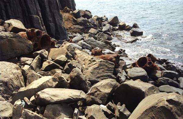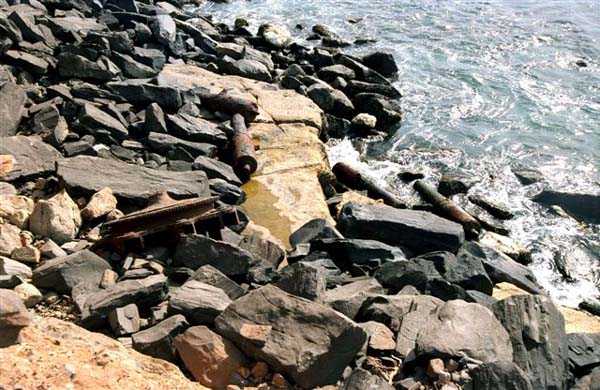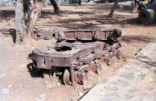 At the top of the access road, the "gun transport road", a blockhouse for 37 mm TR guns blocks access to the fort. The 24 cm guns and machine guns are sent back to mainland France in 1915. The turret guns are removed in 1918. They are ready to be shipped to mainland France when the armistice occurs. They will be reassembled after the war. The turret is modified before the Second World War, like its counterparts at Bel-Air and Cape Manuel, to receive guns 240 mm Mle 1902-06. The North battery is rearmed with 4 guns 138 mm Mle 1881 on PC carriage. After the events of September 1940, the 138 mm battery is replaced by 5 guns 150 mm Krupp, the ultimate evolution of the armament of the Castel of Gorée. Besides the remnants of its armament and its ancillary installations, underground magazine, shelter-factory, PDT, projector shelters, the warlike past of the Castel is expressed by the carcasses of guns and carriages of all eras, thrown at the foot of its basaltic cliff. It is a great pity that it was deemed useful to disfigure the site with a slavery memorial. Gorée played only a marginal role in the slave trade, but the erection of this monument undoubtedly responds to the guilt and repentance needs of many Western tourists, well… JJM 10/08/2008
