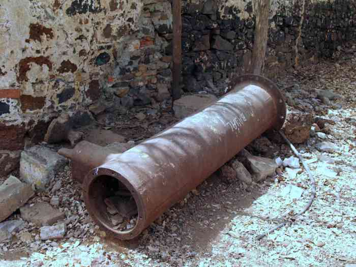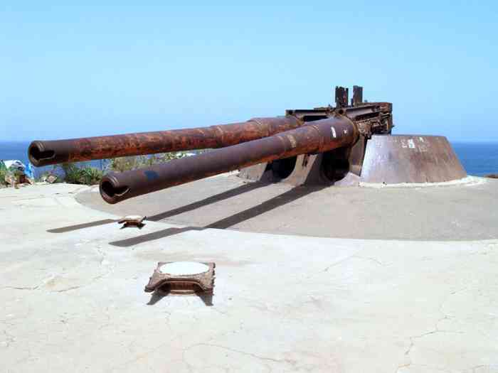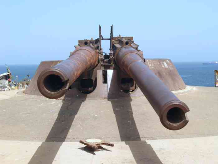 Gorée. La tourelle du Castel de Gorée est en tous points identique à celle de la batterie de Bel-Air. Nous vous renvoyons donc à la fiche de cet ouvrage, pour la description de la tourelle à 2 canons de 240 Mle 1893-96 M. La distribution des locaux du massif bétonné a été légèrement modifiée, pour permettre l’intégration de celui-ci dans le bastion 3 du Castel. La tourelle de Gorée, telle qu’on peut la voir de nos jours, n’est pas dans son état d’origine. Elle a subit des modifications à la veille de la Seconde Guerre mondiale, comme ses semblables de Dakar. Nous allons donc développer la genèse de ces modifications, que l’on peut facilement constater à Gorée. Les tubes et berceaux des tourelles de Bel-Air et du Cap Manuel sont embarqués, pour Bordeaux, les 10 juin et 18 octobre 1918. Ceux de Gorée sont déposés et prêts à être transférés au port mais, le 23 novembre, le ministre donne l’ordre de surseoir à leur embarquement. Son insularité l’a sauvée. Dès 1919 le réarmement de Dakar est envisagé et des projets pharaoniques présentés, comme en métropole. Un programme de 1922 envisage l’installation de 8 pièces de 305 en 2 batteries, la modification de la tourelle de Gorée pour le tir aux grands angles, le réarmement des 2 autres tourelles avec des canons de 155 Mle 1920, et la construction de 3 batteries à 4 pièces de 155 du même modèle. Tout cela n’est pas sérieux et ne correspond pas aux possibilités d’une France exsangue. Le programme réduit de 1924 prévoit la transformation des 3 tourelles pour le tir aux grands angles. Mais cela demanderait la fabrication de 4 tubes de 240 Mle 1893-96 M, ce qui n’est pas très réaliste. Et le coût de la transformation serait considérable. Une étude de la société Schneider, lancée la suite du voyage à Dakar, en 1930, d’un de ses ingénieurs, a en effet démontré qu’une modernisation complète des tourelles serait nécessaire, et nécessiterait près de 100 000 heures de travail par tourelle, non compris le transport et la transformation des berceaux au Creusot. Il faut donc attendre le programme de 1934 pour voir apparaître une solution économique, le réarmement des tourelles avec des canons de 240 Mle 1902-06, provenant du désarmement des cuirassés de la classe Danton. Ce choix est cohérent, puisque ce canon a été également choisit pour réarmer la batterie des Mamelles. Mais l’installation de ces tubes de 50 calibres et de leur encombrant berceau dans les tourelles va poser de délicats problèmes, qui ne seront résolus que par des trésors d’ingéniosité bien français. Il a fallu découper les 20 centimètres de blindage de la muraille des tourelles pour permettre le débattement vertical du berceau et, malgré le rehaussement des supports de tourillons de celui-ci, l’angle de pointage vertical ne dépasse pas 23°55. Dans ces conditions, la portée est de 19 100 mètres avec l’obus de rupture coiffé Mle 1909. Soit moins que ce que l’on pouvait espérer avec les tourelles d’origine, modifiées pour le tir à 40°. La cadence de tir n’est que d’une salve à la minute car il faut, après chaque tir, ramener le tube à la position de chargement. L’encombrement des matériels n’a pas permis le remontage de la toiture, ce qui est moindre mal. La faible épaisseur de celle-ci ne lui aurait en effet pas permis de résister à des obus arrivant aux grands angles. Elle a donc été remplacée par une vaste toile de tente, qui abrite les servants des ardeurs du soleil tropical. Le toit de la tourelle de Gorée git d'ailleurs toujours sur le sol, à l'endroit ou les techniciens de Schneider l'ont déposé, il y a soixante-dix ans. Les photos aériennes montrent bien la disproportion entre la tourelle et ses encombrants canons. Malgré leurs imperfections, et quelques défauts de jeunesse, les tourelles de Gorée et du Cap Manuel se sont bien comportées en septembre 1940, mettant plusieurs coups au but sur les navires britanniques. La qualité de leur conduite de tir et la grande motivation de leurs servants ont compensé leur faible cadence de tir. La tourelle du Cap Manuel était servie par des marins, celle de Gorée avait un équipage mixte, marins et bigors. Aucun n’avaient oublié Mers el-Kébir… Le PDT de la batterie est placé sur le bastion 4. Il était équipé d’un conjugateur « Colonies », et il nous montre toujours la cuirasse de son télémètre stéréoscopique SOM, de 5 mètres de base, amputée de son bras droit. Les volées des tubes de la tourelle de Gorée ont été partiellement découpées au chalumeau en 1960, et ses parties nobles enlevées. Mais telle qu’elle se présente de nos jours, elle présente une valeur historique considérable, et elle mériterait mieux que son sort actuel, ignorée par ses propriétaires et méprisée par les touristes. Der Turm des Castel von Gorée ist in allen Punkten identisch mit dem der Batterie von Bel-Air. Wir verweisen Sie daher auf die Karte jenes Werkes für die Beschreibung des Turms mit 2 Kanonen 240 mm Mle 1893-96 M. Die Aufteilung der Räume des betonierten Massivs wurde leicht modifiziert, um seine Integration in den Bastion 3 des Castel zu ermöglichen. Der Turm von Gorée, wie er heutzutage zu sehen ist, ist nicht in seinem Originalzustand. Er erfuhr kurz vor dem Zweiten Weltkrieg Änderungen, wie seine Gegenstücke in Dakar. Wir werden daher die Entstehung dieser Änderungen darlegen, die man in Gorée leicht feststellen kann. Die Rohre und Wiegen der Türme von Bel-Air und Kap Manuel werden für Bordeaux am 10. Juni und 18. Oktober 1918 eingeschifft. Die von Gorée werden abgebaut und sind bereit, zum Hafen transferiert zu werden, aber am 23. November erteilt der Minister den Befehl, ihre Einschiffung auszusetzen. Seine Insellage hat ihn gerettet. Bereits 1919 wird die Wiederbewaffnung von Dakar erwogen und pharaonische Projekte vorgestellt, wie im Mutterland. Ein