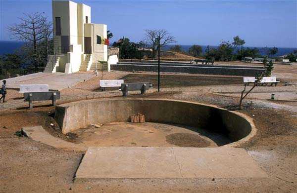 Gorée. Realizována v letech 1891 až 1895 a vyzbrojena 4 děly 240 mm Mle 1870-87 na lafetě Mle 1888 PC, byla tehdy nejmodernější a nejsilnější baterií celého komplexu Gorée Dakar. Její kusy jsou rozmístěny ve 4 betonových stanovištích a má podzemní sklady. Její hlavní palebné pole pokrývá severní průliv, sekundární pole pokrývá jižní průliv. Její výzbroj je sejmuta v roce 1915 k odeslání zpět do mateřské země. Je přeměněna před druhou světovou válkou. Její stanoviště jsou nahrazena 4 jámami, z nichž každá přijímá dělo 138 mm Mle 1881 na PC lafetě. Tento starý kus vystřeluje čepicový průbojný granát o hmotnosti 42 kilogramů na 14 300 metrů. Jeho kadence je 3 výstřely za minutu. Moderní PDT (postřelovací stanoviště) je postaven v roce 1939. Vystavěn za bastionem 5, obdrží 5metrový dálkoměr SOM, jehož pancíř je stále na místě, amputován o levou paži. Tato baterie měla příležitost otevřít palbu na britské lodě v září 1940. V roce 1941 je baterie přezbrojena 5 děly 150 mm Krupp, pocházejícími z pomocného křižníku Charles Plumier, odzbrojeného v Dakaru v roce 1940. Tyto německé kanóny byly získány z bývalého německého křižníku Straslund, postoupeného Francii po první světové válce jako válečné reparace a přejmenovaného na Mulhouse. Vystřelují na 18 000 metrů průbojný nebo výbušný granát o hmotnosti 45 kilogramů. Nelze již mluvit o severní baterii Castelu, protože 5 jam 150 mm je rozmístěno po celé jeho ploše. Jedna z jam zaujímá stanoviště č. 1 staré baterie. Viz plán v popisu Castelu Gorée. S těmito relativně moderními kusy je palebná síla Castelu značně zvýšena. Tyto kusy jsou sešrotovány na konci 50. let 20. století. Lafety jsou vyhozeny na úpatí útesu, kde je lze stále vidět. Je velmi pravděpodobné, že hlavně potkal stejný osud… JJM 10/08/2008