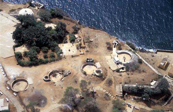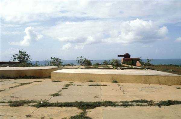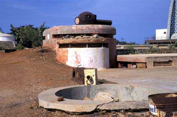 Gorée. Réalisée de 1891 à 1895, et armée de 4 canons de 240 Mle 1870-87 sur affût Mle 1888 PC, c’est alors la batterie la plus moderne et la plus puissante de l’ensemble Gorée Dakar. Ses pièces sont disposées dans 4 alvéoles bétonnées, et elle dispose de magasins souterrains. Son champ de tir principal couvre la passe Nord, le champ de tir secondaire couvrant la passe Sud. Son armement est déposé en 1915, pour être renvoyé en métropole. Elle est transformée avant la Seconde guerre mondiale. Ses alvéoles sont remplacées par 4 cuves, recevant chacune un canon de 138 Mle 1881 sur affût PC. Cette pièce ancienne envoie un obus de rupture coiffé, d’un poids de 42 kilos, à 14 300 mètres. Sa cadence de tir est de 3 coups à la minute. Un PDT (poste directeur de tirs) moderne est construit en 1939. Édifié en arrière du bastion 5, il reçoit un télémètre SOM de 5 mètres, dont la cuirasse est toujours en place, amputée de son bras gauche. Cette batterie a l’occasion d’ouvrir le feu sur les bâtiments britanniques, en septembre 1940. En 1941, la batterie est réarmée à l’aide de 5 pièces de 150 Krupp, provenant du croiseur auxiliaire Charles Plumier, désarmé à Dakar en 1940. Ces canons allemands ont été récupérés sur l’ex-croiseur allemand Straslund, cédé à la France après la Première Guerre mondiale, au titre des dommages de guerre, et rebaptisé Mulhouse. Ils expédient, à 18 000 mètres, un obus de rupture ou explosif de 45 kilos. On ne peut plus parler de batterie Nord du Castel, car les 5 cuves de 150 sont réparties sur toute la surface de celui-ci. Une des cuves occupe l’emplacement N° 1 de l’ancienne batterie. Voir le plan dans le descriptif du Castel de Gorée. Avec ces pièces, relativement modernes, la puissance de feu du Castel se trouve très sensiblement augmentée. Ces pièces sont ferraillées à la fin des années 1950. Les affûts sont jetés au pied de la falaise, ou on peut encore les voir. Il est très possible que les tubes aient subi le même sort… JJM 10/08/2008