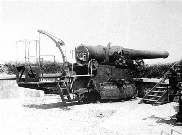 Gorée. Built from 1891 to 1895 and armed with 4 guns 240 mm Mle 1870-87 on carriage Mle 1888 PC, it was then the most modern and powerful battery of the entire Gorée Dakar complex. Its pieces are arranged in 4 concrete emplacements and it has underground magazines. Its main field of fire covers the North pass, the secondary field covering the South pass. Its armament is removed in 1915 to be sent back to mainland France. It is transformed before the Second World War. Its emplacements are replaced by 4 pits, each receiving a gun 138 mm Mle 1881 on PC carriage. This old piece fires a capped armor-piercing shell weighing 42 kilograms to 14,300 meters. Its rate of fire is 3 rounds per minute. A modern PDT (fire direction post) is built in 1939. Constructed behind bastion 5, it receives a 5-meter SOM rangefinder, whose armor is still in place, amputated of its left arm. This battery had the opportunity to open fire on British ships in September 1940. In 1941, the battery is rearmed with 5 guns 150 mm Krupp, from the auxiliary cruiser Charles Plumier, disarmed at Dakar in 1940. These German guns were recovered from the former German cruiser Straslund, transferred to France after the First World War as war reparations and renamed Mulhouse. They fire, to 18,000 meters, an armor-piercing or explosive shell of 45 kilograms. One can no longer speak of the North battery of the Castel, because the 5 pits of 150 mm are distributed over its entire surface. One of the pits occupies site No. 1 of the old battery. See the plan in the description of the Castel de Gorée. With these relatively modern pieces, the firepower of the Castel is significantly increased. These pieces are scrapped at the end of the 1950s. The carriages are thrown at the foot of the cliff, where they can still be seen. It is very likely that the barrels suffered the same fate… JJM 10/08/2008