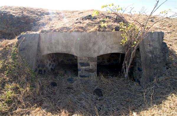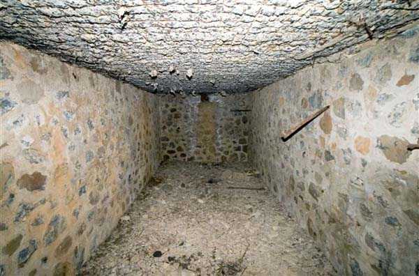 The Champ de Tir battery provides artillery support for the position. Established behind work D, at 90 meters altitude, it is armed with 4 155 mm L Model 1877 guns. It is a very simple, even rudimentary work, comprising 4 masonry emplacements, separated by traverses equipped with ammunition niches, as well as a small buried shelter with a concrete roof. It is well cleared of vegetation, still on military land, but easily accessible. JJM 01/11/07