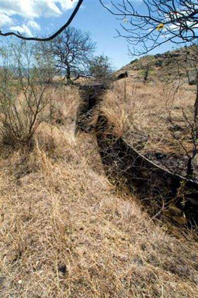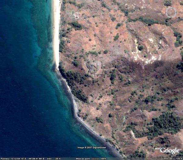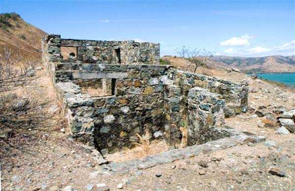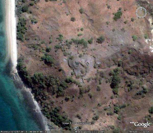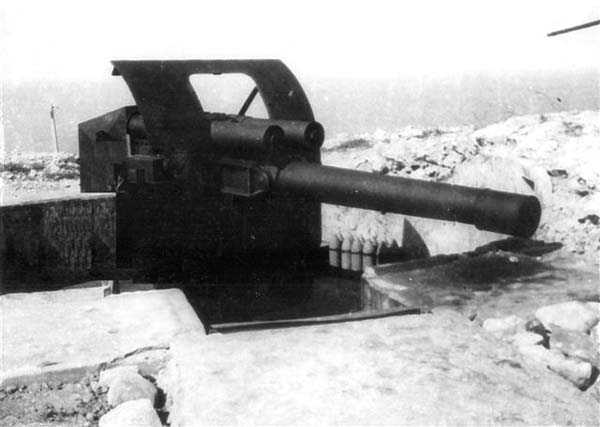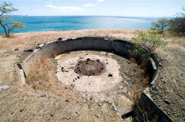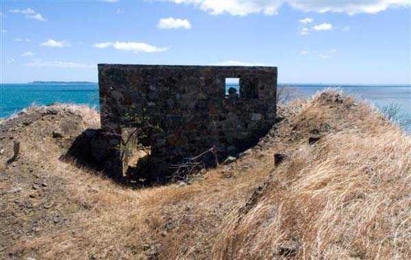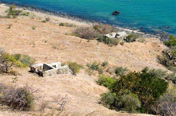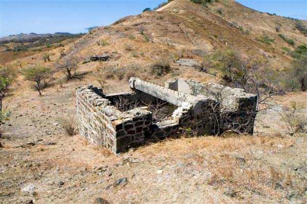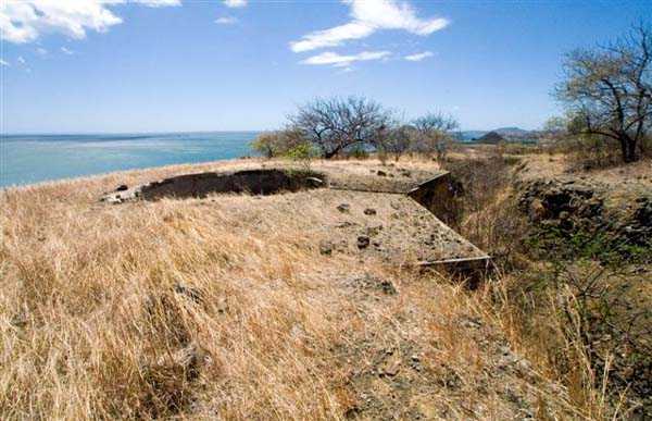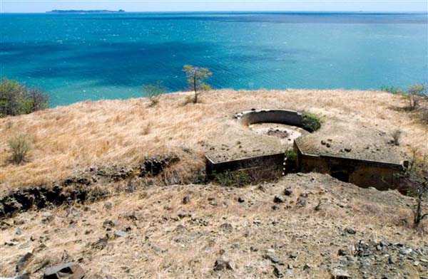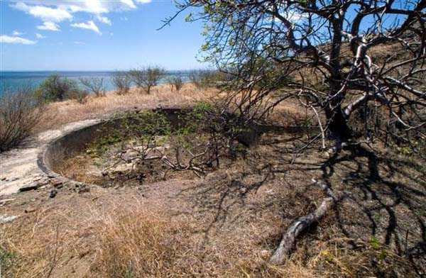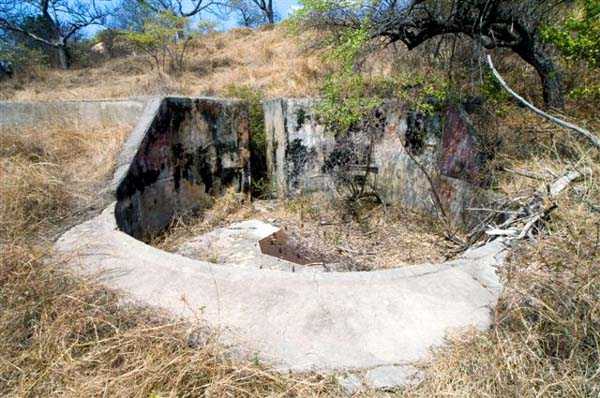 This battery, armed with 4 138 mm Model 1881 guns on mount Model 1917, had just been put into service at the time of the British attack in May 1942. This equipment is old, even though the mount Model 1917 can be considered quite modern. The guns are arranged in pits with adjoining ammunition niches, connected by a masonry trench. The FCP, masonry and covered with armor, is located at the top of the hill. The searchlight shelter is located below the battery, with its control post. These two elements were covered by armor, or a reinforced concrete roof, now disappeared, like that of the FCP (Fire Control Post). The mission of the battery, located at 36 meters altitude, and commanded by Captain Caussèque of the Colonial Artillery Group of Diego-Suarez, was to prevent a landing in the Baie du Courrier, which was also defended by a field of 111 mines. Its very isolated, and therefore very exposed, situation meant it was protected by a section of the 3rd Battalion of the 2nd RTM (Malagasy Rifle Regiment), under the orders of Sergeant Desbat. This protection did not prevent the surprise capture of the work by the 5th Commando, which landed on May 5th at 2 a.m. in the Anse d'Ampankara. Sergeant Desbat was killed in the engagement, thus becoming the first casualty of the battle. The battery is still in good condition, although the reinforcement of the metal parts is gradually disfiguring it. The site is worth a detour. JJM 02/12/07
