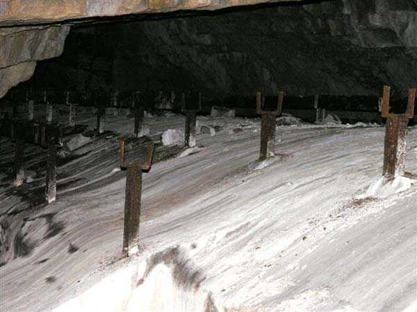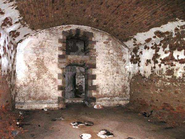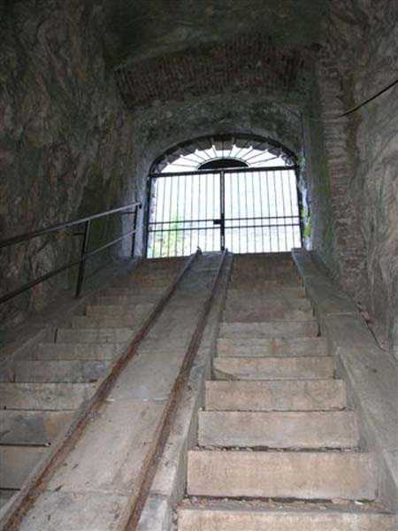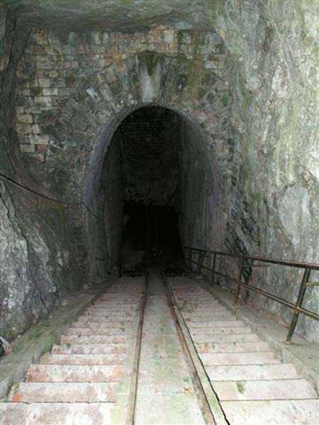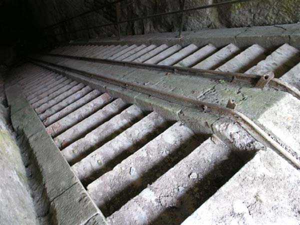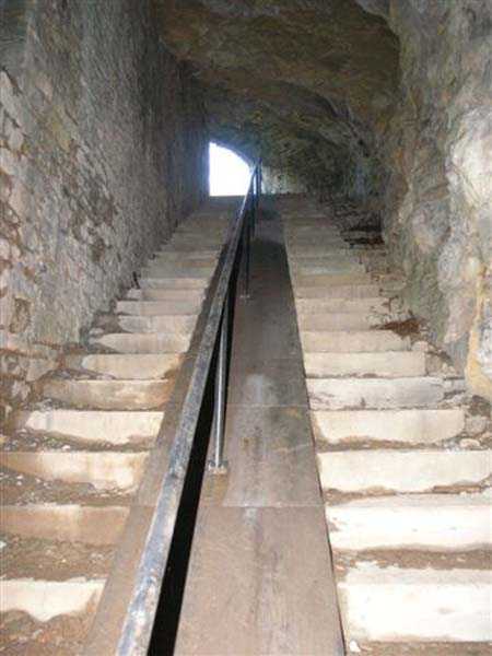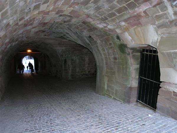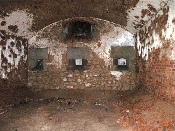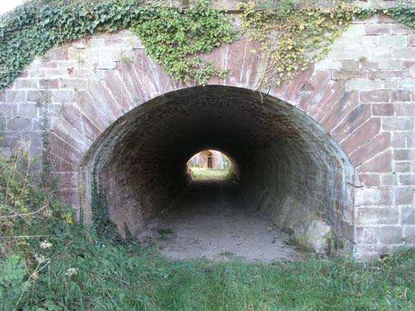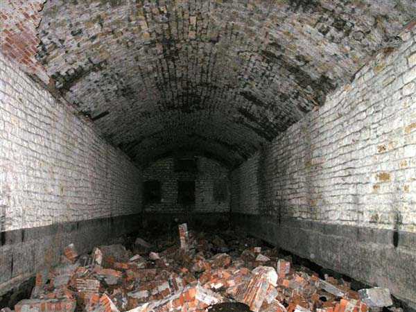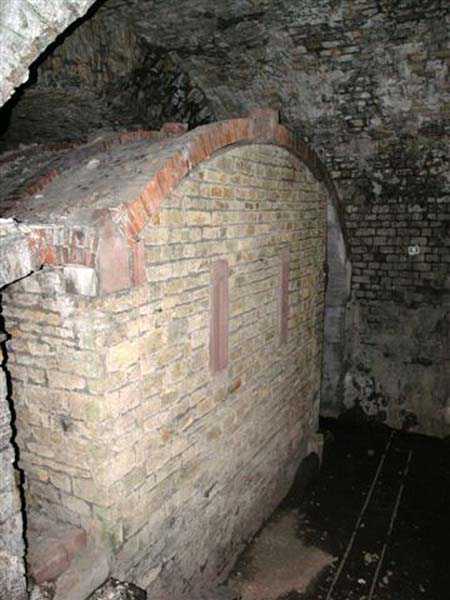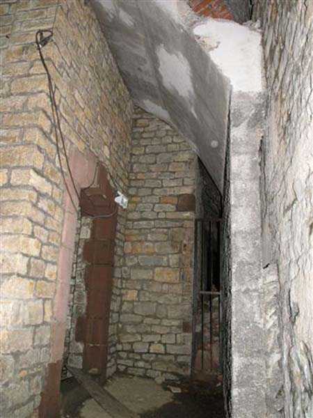 Place de Belfort, west center of the square, 1876-1877. Under the third enclosure, in 1876, the "S" store was dug. As a reminder, the central stores of Justice are designated "A" and "B", and a third, which we were unable to visit and designated "N" (1876), is located in the trench between the castle and the Justice ridge. The "S" store is accessible by a double staircase totaling 34 steps of 20 cm. The right part of the descent is masonry, the left is rough rock. At the foot of the staircase, an arched masonry buttress supports the entrance hall of the store, the storage room of which is offset to the right in relation to the axis of the access staircase. This is a nested type store, that is to say, built of rubble masonry in an artificial cavity. The vault was to be topped with a framework supporting a tiled roof, but only the supports of this framework remain today (10/2007). The lateral sanitary ducts show buttresses along the entire length of the store, the dimensions of which are 20 x 6 m. The lamp room is 156 cm wide and allowed three lamps to be served, the crenellations of which are 140 cm from the ground. On the other hand, between the base of the crenellation and the trace of the floor in the storage room, there is only 110 cm, which is singularly little. The left lateral duct extends beyond the lamp room to reach a corridor leading to another staircase emerging, this one, in the fourth enclosure. This store is quite degraded by humidity. If we return to the second enclosure, we cannot miss the bossed entrance of the "U" magazine, surmounted by the 1877 chronogram. Here, two parallel flights of a staircase-ramp lead down to the depths. The central ramp was later equipped with rails allowing the supply or evacuation of powders with less effort. 37 steps below, after crossing a superb horseshoe-shaped masonry arch, the magazine, also nested, is installed perpendicularly on the left. The lamp niche of the entrance airlock is 262 cm from the ground. The storage room is essentially identical to that of the "S" magazine, although with a greater apparent height. The side galleries also have buttresses but are more discreet, the narrow width of the galleries naturally leading to this. The major difference is that the cavity here has been lined with rubble masonry. The roof of the storage room shows no traces of any covering, even though we remain convinced that there was one. The terracotta brick vault largely collapsed during an earthquake in February 2003. What remains suspended is just waiting to collapse. To discuss the third reason, we must return to the access route to the castle courtyard. In the tunnel of the second enclosure, on the left, a third powder magazine, as devoid of a chronogram as of a designation letter, has all the characteristics of a model conforming to the ministerial circular of July 27, 1867. Its storage room, 13 x 6 m, is provided with six lamp crenellations in two lines of three superimposed. In order to support the floor of the upper level, rather than corbels, the sides are provided with a continuous coping of pink sandstone, along the entire length of the storage room. The side shafts are quite wide; barbicans for ventilation open into it, but what is striking is the contrast between the masonry of the envelope, banal, and that of the store itself, in very neat pink sandstone. The lamp room was closed on both sides by a thin partition in which a door surmounted by an oculus was pierced. The absence of any trace of an intermediate floor in this room suggests that the upper crenellations were reached using a ladder. This store serves as a warehouse for various works and statues. Unfortunately, its walls have served as a support for the multicolored writing of messages that are certainly praiseworthy, but not appropriate in one of the rare and best preserved Mle 1867 stores that remain in France. See also Belfort central stores.