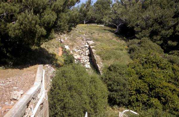 Fortress of Toulon, south-east of the fortress. From 32 m/alt to 61 m/alt. In 1847, a crenellated guardhouse Mle 1846 was erected there. After 1886, a complete overhaul will organize 3 batteries which will compose an ensemble oriented to the west. The head front is constituted by the cliff and the gorge front, with an approximate length of 300 m, is defended by a revetted scarp from which small bastions for close defense project. In the south of the device, we found in 1911, 4 G guns 19 c Mle 1875-76 of which 2 G.P.C. carriages and 2 on G.P.A. carriages. In the center, in front of the barracks, 6 guns 95 mm, grouped by two, oriented to the south, south-west and west. Finally the north battery counted for its part, 6 G guns 24 c Mle 1876 on G.P.C. carriage. This battery will be reorganized slightly to the rear and its orientation, from west-south-west will change to south-west. It will lose 2 guns and the 4 remaining will be installed on C carriages Mle 1911. A projectile magazine, Mle 1879, barracks with 4 bays, 1 underground rock magazine and a projector on the cliff side (searchlight 1.50 m diameter), whose combat shelter facade is concreted over about ten meters in height for a width of ± 5 m. The French army will bring numerous modifications to this battery during the Interwar period and the Germans will occupy the site also pouring much concrete. Sometimes spelled "Carqueyranne". Military terrain access forbidden.