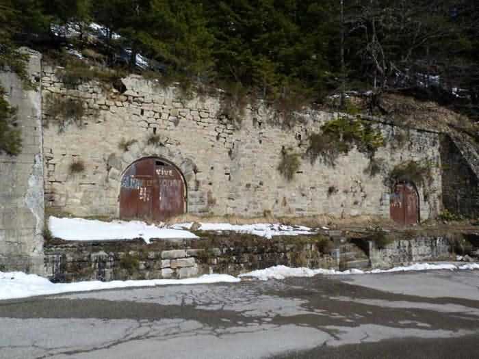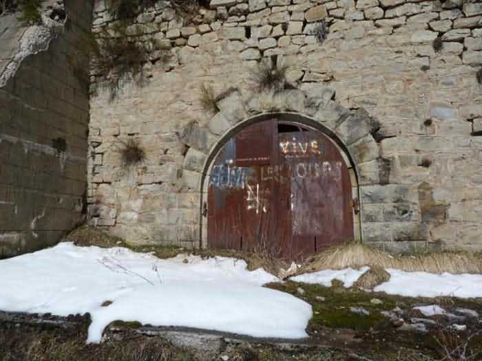 Dept 06 (Alpes-Maritimes) North-eastern avancées of Nice, Col de Turini. 1902. 1 638 m/alt. Sector magazine under rock, identical in every point to that of Baisse du Pape. The two doors are welded.