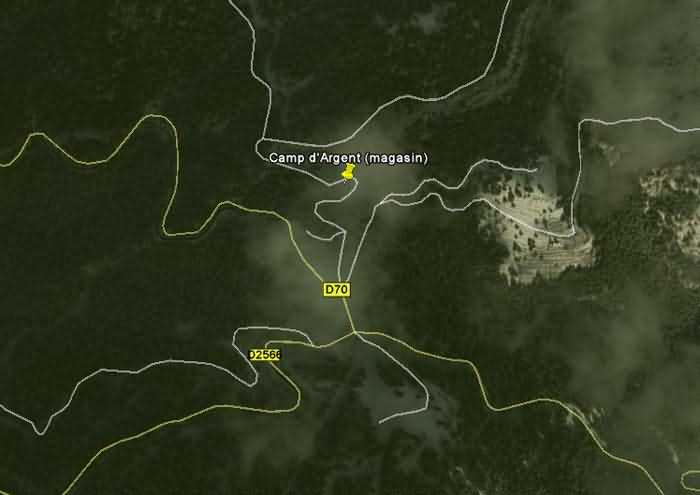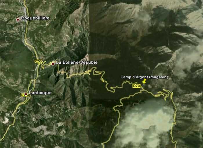 Dept 06 (Alpes-Maritimes) Severovýchodní avancées z Nice, col de Turini. 1902. 1 638 m/alt. Sektorový magazín pod skálou, ve všech ohledech totožný s tím na Baisse du Pape. Dvoje dveře jsou přivařeny.