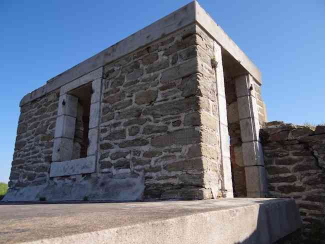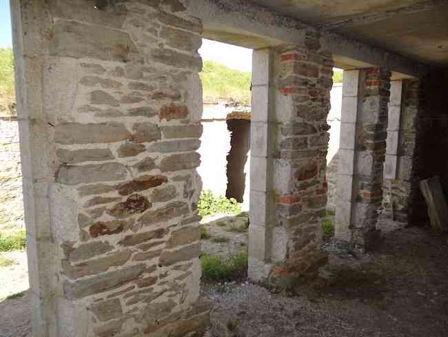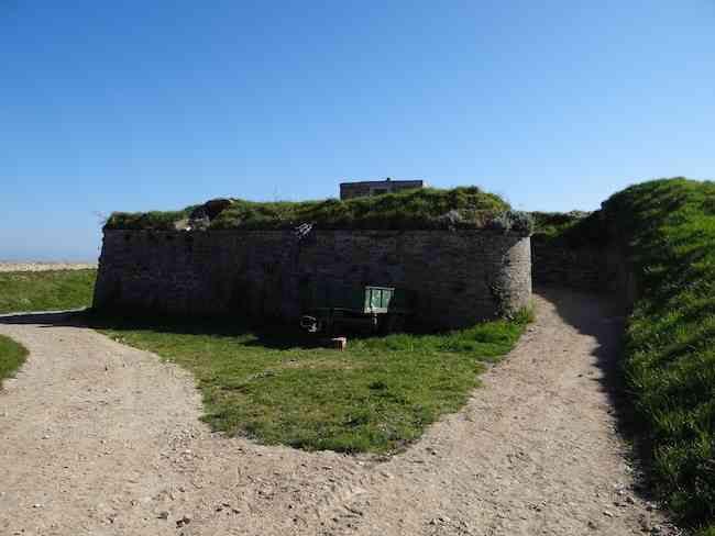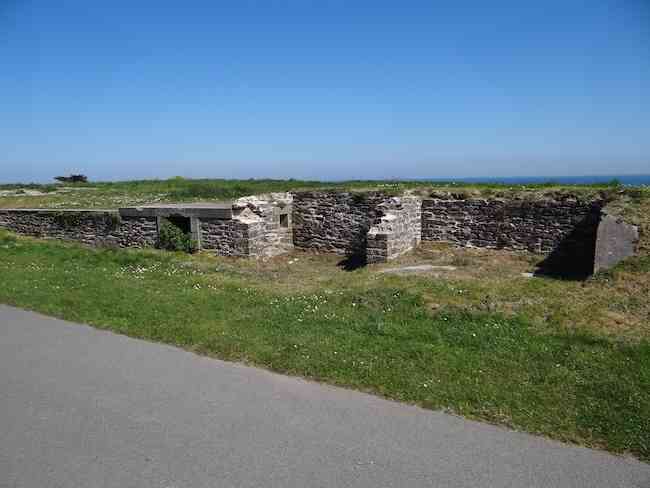 Fortress of Lorient, Belle-Île. Little information about this battery has filtered down to us, so much so that we had to pass by it to learn of its existence. It is located on the territory of the municipality of Le Palais, between the Porte de Secours of the citadel and lunette E. It is apparently a construction dating from around 1890 which consists of an alignment of firing platforms separated by full traverses at the base of which an ammunition niche was arranged and covered with a ±100 cm concrete slab. Aligned along the access road to the Porte de Secours, parallel to the enclosure of the former penitentiary colony for children (which served this function from 1880 to 1977) from which it takes its name, it was probably built in two phases. Indeed, following the four platforms intended, each according to the local Historical Society, to accommodate a 120 L Bange gun, there are, on the left (towards the west) and beyond the small room for the telephonist and the fire control post - doubled here - two other platforms reputedly intended for two 95 mm guns on field carriages. We could not detect any marked difference in the masonry of the two adjoining parts, but the presence of concrete in the eastern part could signify, if not a later construction, at least a possible modernization. The battery no longer has its original levels, the niches being almost no longer visible due to the raising of the ground level required for the establishment of the current roadway. Well situated at about twenty metres altitude, the battery protected with its direct fire the approaches to the port of Le Palais. It could draw its supplies of shells and propellant powder from the magazines of the citadel and its envelope. On its front and downslope, one finds an old firing range as well as the location of the old Hoche battery, developed in 1801 and decommissioned in 1874 (see Belle-Île). The Batterie de la Colonie, acquired simultaneously with the citadel by Mr. André Larquetoux on August 12, 1960, was restored by the latter. It is today (04/2012) freely accessible and lends itself wonderfully to picnics.