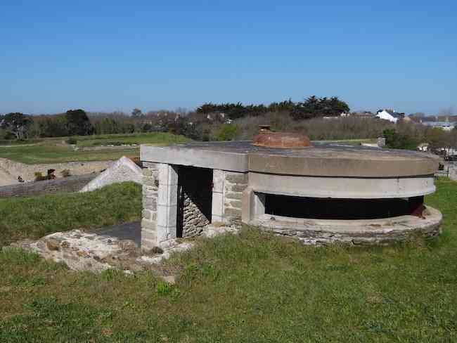 Festung von Lorient, Belle-Île. Wenig Informationen über diese Batterie sind zu uns durchgedrungen, so sehr, dass wir zufällig vorbeikommen mussten, um von ihrer Existenz zu erfahren. Sie befindet sich auf dem Gebiet der Gemeinde Le Palais, zwischen dem Rettungstor der Zitadelle und der Lünette E. Es handelt sich offenbar um einen Bau aus etwa 1890, der aus einer Reihe von Schießplattformen besteht, die durch volle Traversen getrennt sind, an deren Basis eine Munitionsnische eingerichtet und mit einer ±100 cm dicken Betonplatte abgedeckt wurde. Entlang der Zufahrtsstraße zum Rettungstor aufgereiht, parallel zur Umfassungsmauer der ehemaligen Besserungsanstalt für Kinder (die diese Funktion von 1880 bis 1977 hatte), von der sie ihren Namen hat, wurde sie wahrscheinlich in zwei Phasen gebaut. Tatsächlich folgen auf die vier Plattformen, die jeweils, laut der lokalen historischen Gesellschaft, eine 120 L Bange-Kanone aufnehmen sollten, auf der linken Seite (nach Westen) und jenseits des kleinen Raums für den Telefonisten und der Feuerleitstelle - hier doppelt vorhanden - zwei weitere Plattformen, die für zwei 95 mm Feldgeschütze bestimmt gewesen sein sollen. Wir konnten keinen markanten Unterschied im Mauerwerk der beiden aneinandergrenzenden Teile feststellen, aber das Vorhandensein von Beton im östlichen Teil könnte, wenn nicht einen späteren Bau, so doch eine mögliche Modernisierung bedeuten. Die Batterie hat ihre ursprünglichen Höhen nicht mehr, da die Nischen aufgrund der Anhebung des Bodenniveaus für den Bau der heutigen Fahrbahn kaum noch sichtbar sind. Gut gelegen auf etwa zwanzig Metern Höhe, schützte die Batterie mit ihrem Direktfeuer die Annäherungen an den Hafen von Le Palais. Sie konnte ihre Versorgung mit Granaten und Treibladungspulver aus den Magazinen der Zitadelle und ihrer Enveloppe beziehen. Vor ihr und hangabwärts befindet sich ein alter Schießstand sowie der Standort der alten Batterie Hoche, die 1801 angelegt und 1874 außer Dienst gestellt wurde (siehe Belle-Île). Die Batterie de la Colonie, die gleichzeitig mit der Zitadelle am 12. August 1960 von Herrn André Larquetoux erworben wurde, wurde von letzterem restauriert. Sie ist heute (04/2012) frei zugänglich und eignet sich wunderbar für Picknicks.