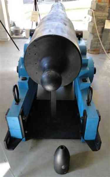 The 30-pounder cannon is a naval or coastal artillery piece whose projectile weighs about 30 pounds, or 15 kg. Designed for long-range fire against enemy ships, it was often used with red-hot balls heated before firing, intended to ignite sails or powder magazines. First developed for the French navy at the beginning of the 19th century, it was later adapted for coastal defense and field artillery. The different models featured variable lengths and calibers according to their use: the long 30-pounder cannon (model 1820) measured 2.706 m and weighed 3,100 kg; the short 30-pounder cannon 2.525 m for 2,540 kg; and the smoothbore 30-pounder coast cannon (model 1840) was intended for defensive batteries before being modified for land use. Its projectile was a solid iron ball, propelled by a precisely measured powder charge, while the gun crew numbered from 6 to 14 men depending on the version and ship. Over time, the 30-pounder cannon underwent several technical evolutions, notably the addition of rifling to increase precision and transformation into more modern calibers, such as the 16 cm cannon. An iconic weapon of the 19th century French navy, it equipped frigates and coastal batteries in particular, playing an important role in the transition between classical and modern artillery.