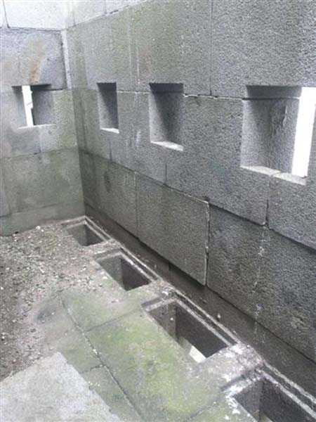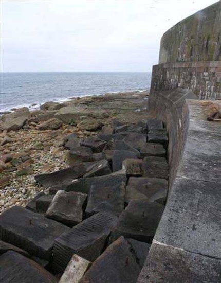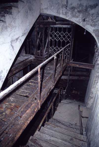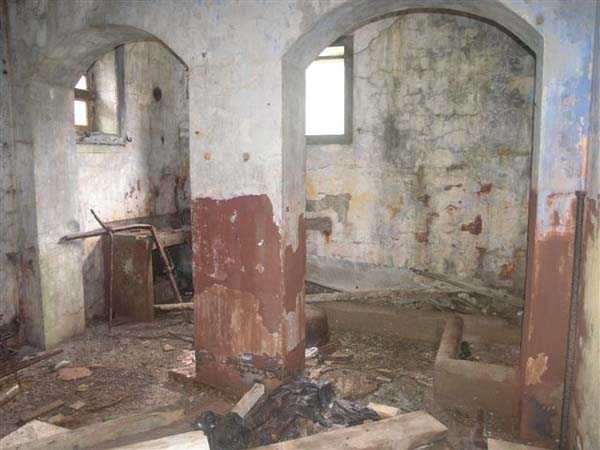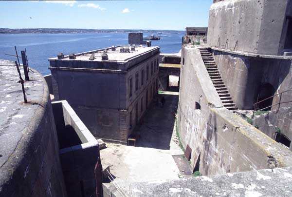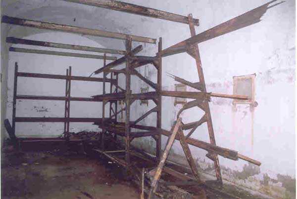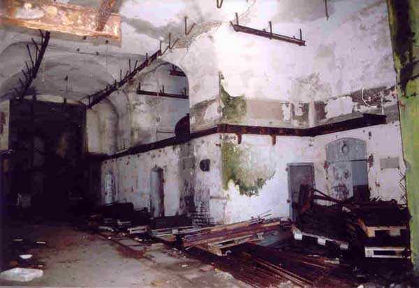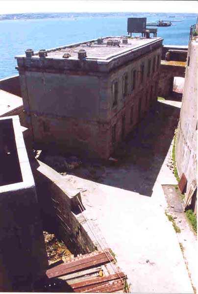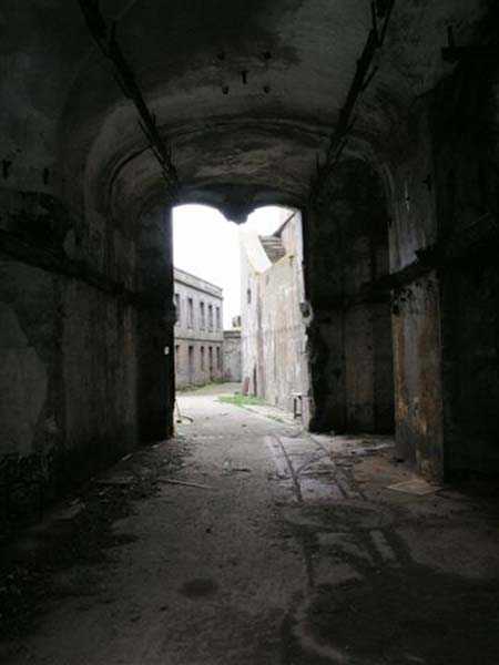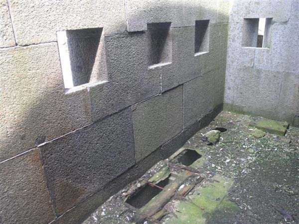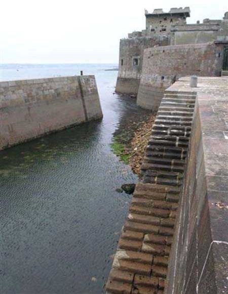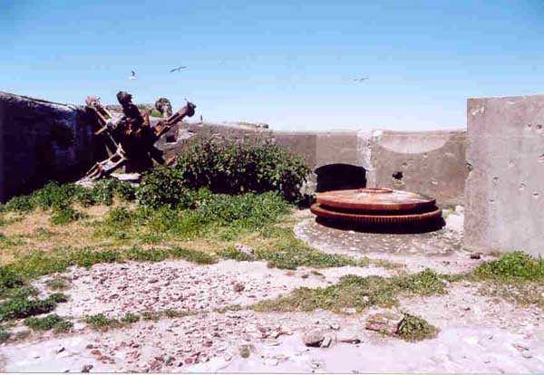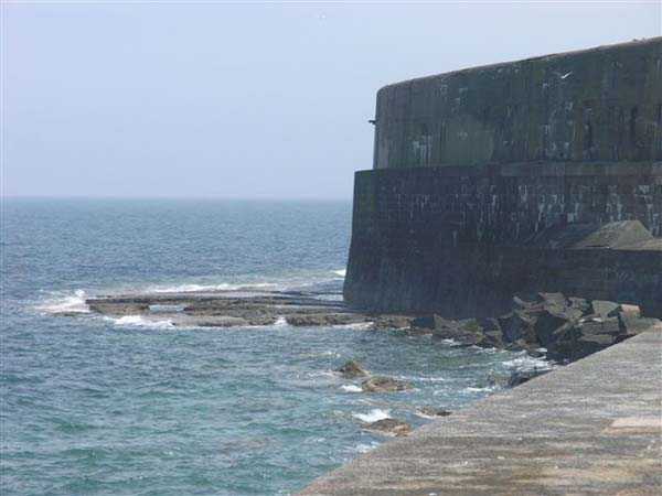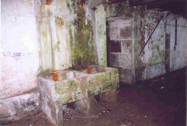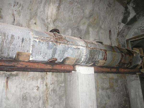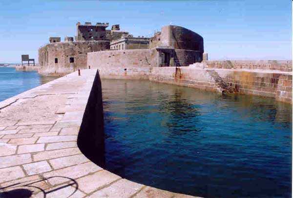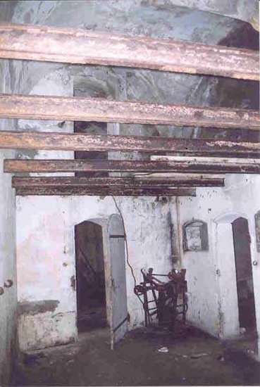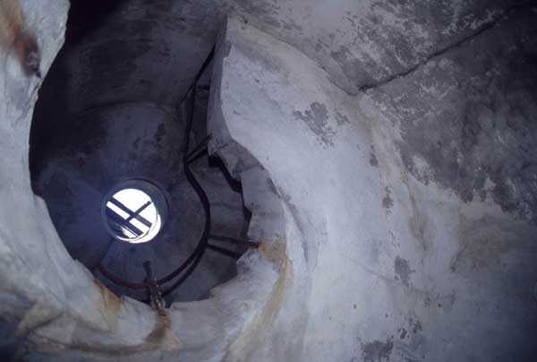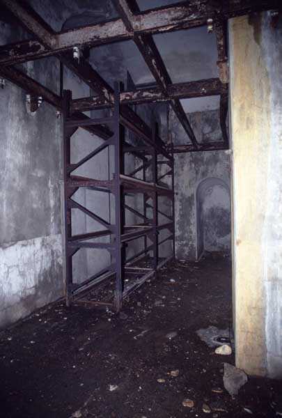 Fortress of Cherbourg, north of the city. A first fort was inaugurated on August 16, 1804. It was called "Bonaparte Battery" and then "Napoleon Battery." This battery was destroyed in February 1808 by a storm that left 176 (246?) dead. It was not until the July Monarchy that work resumed to erect a fort with two levels of casemates topped with barbette-firing guns, all arranged around an oval courtyard. This fort was completed in 1859. Around 1890, the height of the redoubt was reduced before pouring a 3 m thick concrete slab, enclosing the central courtyard, the redoubt, and the front-line battery. On either side, to the rear, two new barracks measuring 18 x 7 m were built, replacing the existing ones. The shape of the fort is an oval semicircle with, at the throat, an oval concrete redoubt projecting. It has a length of 130 m and a maximum width of 70 m. Its location and the fact that access is prohibited have preserved it from many problems, so it is one of the structures that suffered the least from reinforcement. Thus, in June 2007, one could observe: two Poncelet bridges (access to the redoubt), practically all the freight elevators, several gun carriages from the Second World War, an almost complete electrical plant with its ALSTHOM motor, a François-Vaillant furnace model 1887 type C or D, … This is without counting the very numerous door frames with the designations of the premises in German, as well as a splendid fresco also dating from the German occupation. The coal store still contains several cubic meters of this fuel. The redoubt, although modernized, nonetheless retained its deadmen at each of its entrances. In the central gallery, an enormous metal mass rests at a 45° angle in the center of the fort. It is a winch whose southern supports were cut by the ironworkers. The supports on the north side of the gallery bent under the weight. This winch surmounted the 0.80 m railway track which crossed the fort in its length and must have had a serious lifting capacity. The entire northern part of the fort is devoted to the ammunition and charges of the batteries installed on the tops of the fort. Here too, the freight elevators are present and, it must be admitted, we have rarely encountered so many metal remains. However, many beams were cut with a blowtorch. As the recovery was carried out from top to bottom, the metal salvagers attacked many beams supporting the floors of the first floor, but, clearly, they were unable to complete their work of destruction… to our great delight. The freight elevators are still there, as are the grilles, shutters, shelves for the loads, not to mention the door frames,… The fort's armament was installed entirely on its superstructures. We only have precise details from 1904, namely 6 x 32 c guns in two groups of three and two batteries of 4 x 100 mm rapid fire. The 32 c guns were installed on either side of the central fire director position, while the 100 mm batteries occupied the sides of the sky slab. All these guns fired barbettes. We counted at least five access routes to these tops. The sky slab is impressive with its enormous command and fire direction post which has two narrow visors at sea. This behemoth is none other than the fire direction post of the Castel Vendon battery surprised in 1940 by the Germans in full construction, 12.5 km further west. The lower visor controlled the four 138 mm guns installed on the fort in the 1930s and only the upper one was to be used for Castel Vendon. Inside this PdT, we find on the walls the blue color typical of the constructions of the French Navy of the interwar period. A ceiling served as a support for a compass rose and several armored doors escaped the scrap dealers. The German occupier went there with its parasitic constructions such as this anti-aircraft defense tower behind and to the east of the PdT. Thus, in the interwar period, the tops were modified. On each side of the PdT, the 138 mm guns were separated by anti-aircraft defense guns. Despite this, at least two sub-saddles of P.A. model 1882 carriages for 32 c guns are still there, in fact the outer ones of groups of three which in no way hindered the installation of the 138 guns. At the height of the latter, the parapet was modified and we will note duck-step stairs. At the location of the left anti-aircraft gun, we can still see, aimed at the city of Cherbourg, a German 37 mm cannon whose state of preservation astonished us. It should be noted that in 1944, the last German defenders of the Festung Cherbourg entrenched themselves here. The U.S. troops bombarded the Central Fort as evidenced by the numerous impacts in the Flak tower, but also on the granite facing at the rear of the fort. In this regard, it is worth noting two impacts close to each other near the eastern entrance. These impacts, probably from the 57 or 75 mm, are surprisingly little damaged. One hit a rubble stone in the center, the other near a corner. If the second blasted about two cubic decimeters of granite, the first had no other effect than to dig with its splinters diverging lines of little depth in the stone. Good concrete would not have behaved better. The right anti-aircraft tank still houses the metal cross supporting a carriage for a 37 mm Flak 36 gun. Another cross, with a carriage this time, is tilted near the right front of the PdT. From the rear of this PdT, one can return to the first floor of the front-end magazines, but be careful, the staircase is very narrow with its steps covered in guano and when one takes it from outside, the eyes must get used to the darkness and no railing comes to your aid although on each side there is nothing. On either side of the fort there is a small docking port whose pierheads each received two 47 T.R. cannons. These pierheads retain no trace of them. It should also be noted that the three forts on the dike were connected to this dike by a cofferdam topped with a lady, that today there remains only one having