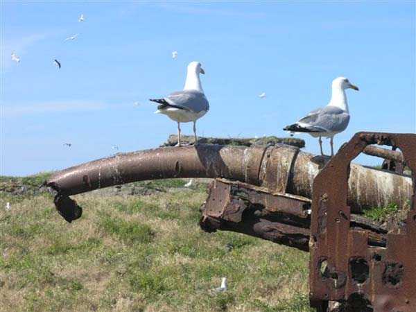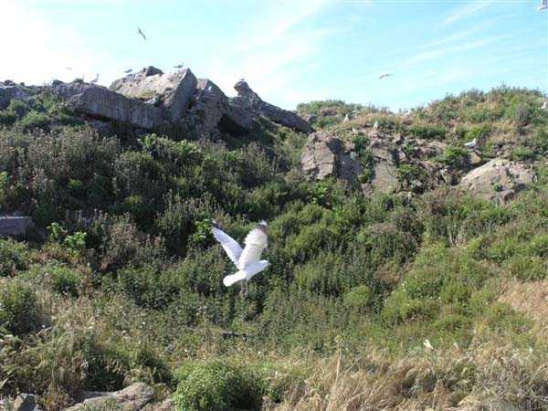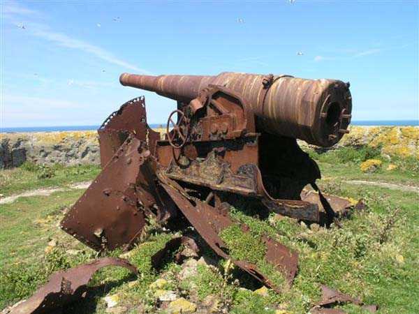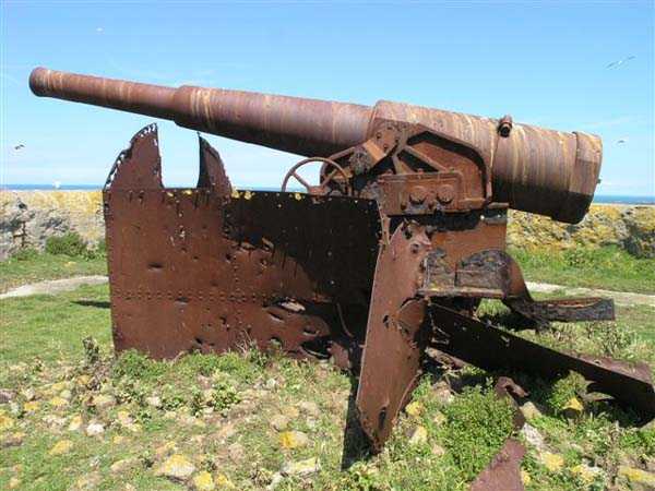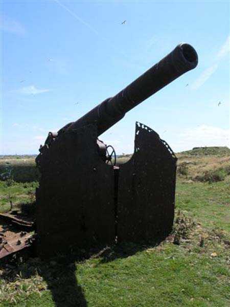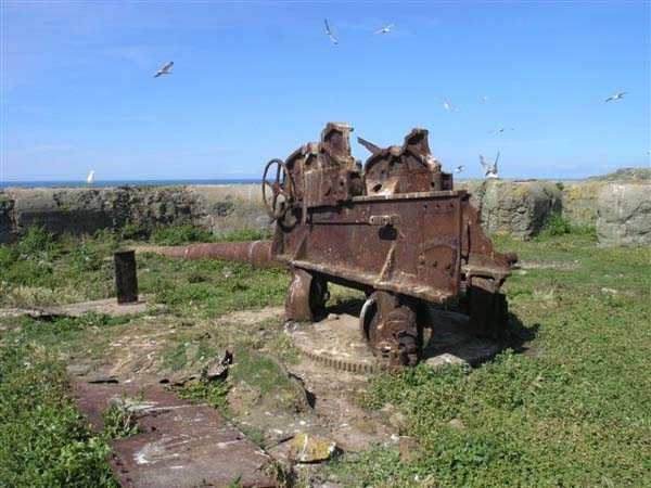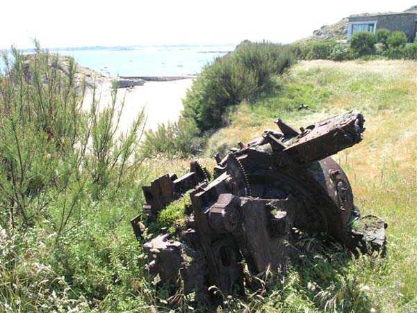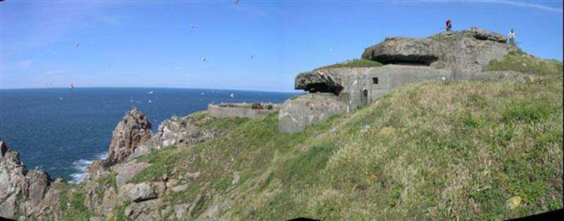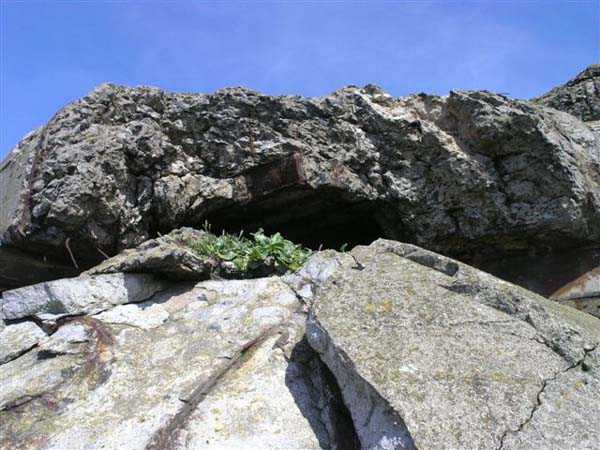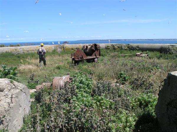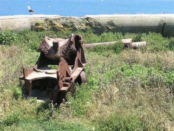 Fortress of Saint-Malo, 4200 m northwest of the old town. It was not easy to gather information on this island, which would enter history in 1944. m long and with an average width of 250 m, it is composed of two hillocks, each culminating at 38 m/alt, and connected by a hollow. The western hillock had a guardhouse built, model 1846 No. 1, while the eastern one received a No. 2. We were unable to find the years of construction of these guardhouses, nor any indications as to their armament. In 1888, the High Council of War proposed to establish a strong position there, a proposal followed by 1890. The western hillock became the keystone of the coastal defense of the corsair city by hosting the only two large-caliber batteries in the place. Just a few meters to the right of the preserved guardhouse, sitting perpendicular to it, a projectile shed was installed. To the left of the guardhouse, facing southwest, a line of four 24c gun emplacements was created, separated by solid crosspieces at the root of which only a niche to shelter the safety shots was provided. At the northern end of this line, a small rock magazine was dug. Still facing southwest, but to the rear of the guardhouse, two platforms, each for two 90mm guns on field mounts, were prepared. To the rear of these, but facing NNW, there was a line of three firing points for 27c mle 1887 mortars on P.C. mounts. These mortars had their own rock magazine to their left. The eastern hillock also retained its guardhouse, behind which two batteries were set up, each with 4 x 95 mm guns on double platforms. Between 1916 and 1918, Belgium was able to use the island to intern Flemish soldiers who showed signs of independence. The camp was set up in the hollow in the center of the island, while the large artillery pieces were directed towards the front. During the occupation of the Second World War, the Germans disrupted the French installations and installed six M 194 mm model 1870-93 guns on M model 1866 P.C. mounts, ex-ALVF, in open-air tanks. The last bastion of Nazi resistance in Ille-et-Vilaine, Cézembre had the sad privilege of suffering, along with the Cité, the first phosphorus and napalm bombardments. It alone resisted the U.S. troops from August 13 to September 2, 1944. During all this time, the bombings erased the last surface traces of the French batteries. Guardhouse No. 1 is now pulverized while the rear half of No. 2 remains. This vestige allows us to see not only that the Germans had covered it with a concrete shell and that the small original powder magazine had been transformed around 1890 with the addition of a lamp loophole. The two rock magazines from 1890, included by the Germans in their system, are still there but difficult to access. Although having undergone several mine clearance campaigns, the interior of the island is forbidden to access. During our visit in June 2007, a smart new fence prohibited all passage and only the small beach facing the continent was freely accessible. The places have remained almost in their 1944 state and the effects of the bombings on the artillery pieces are impressive. It is more than regrettable to let certain pieces rot in this way, which now have great historical value. We are thinking in particular of the almost intact 194 mm on the eastern hillock. It could be brought back, restored and exhibited at the memorial of the Fort de la Cité in Saint-Servan… Money, always money…. At least this ban benefits the avian population as well as nitrophilous vegetation. Cézembre is probably the most important French station of black henbane (Hyoscyamus niger).
