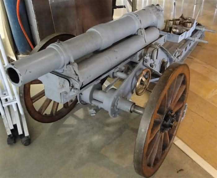 Im Kontext des Séré-de-Rivières-Systems und der Waffenentwicklung bis 1918 veranschaulicht der 65 mm Berggeschütz Modell 1906 perfekt die pragmatische Anpassung vorhandener Materialien an die Bedürfnisse der Befestigung. Ursprünglich als leichtes und demontierbares Geschütz für die Gebirgsartillerie konzipiert, machten seine Mobilität und Handhabbarkeit ihn zu einer geschätzten Lösung zur Verstärkung befestigter Werke, wo er schnell auf improvisierten Stellungen eingesetzt werden konnte, um die Nahverteidigung zu unterstützen. Das 1918 in Tulle gefertigte und heute im Museum von Draguignan ausgestellte Exemplar zeugt von der operationellen Langlebigkeit dieses Kalibers und der während des Großen Krieges fortgesetzten industriellen Anstrengung, robuste und bewährte Materialien an der Front zu halten, die sowohl in statischer Position in den Forts als auch in mobiler Unterstützung an der Front dienen konnten.