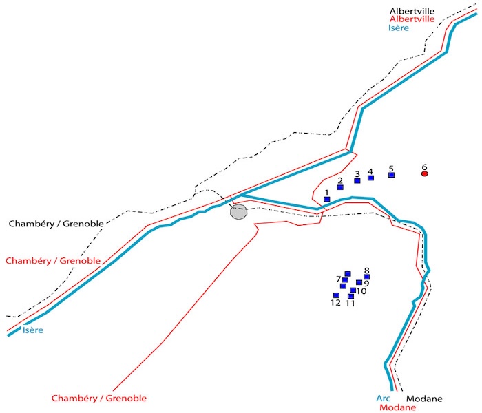 Dept 73 (Savoie). More commonly called the Aiton-Chamousset position. Located at the confluence of the Isère, coming from Albertville, and the Arc, emerging from the Maurienne, (often described as being at the confluence of the Maurienne and Tarentaise) it blocked this possible passage for an Italian army. It comprised 3 forts, 7 batteries (+ 2 attached to the exteriors of fort Montgilbert) and 5 blockhouses. There were few modernizations. Only the optical posts of forts Montperché and Montgilbert were concreted. In 1874, however, the plans were considerably more extensive. It was planned, at the level of Chamousset, a fortified position where troops forced to evacuate the Aiton position could fall back. See Chamousset-Châteauneuf.