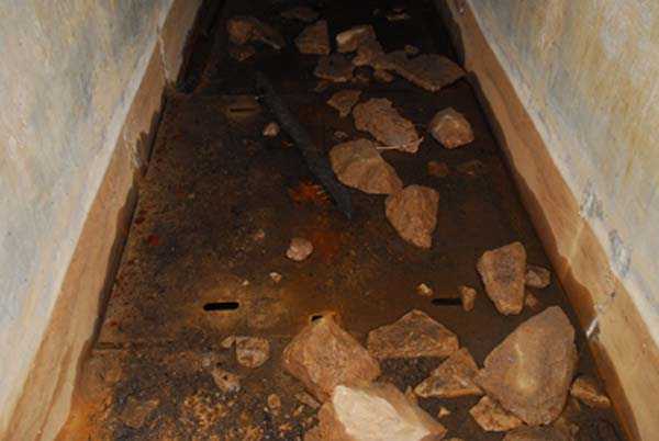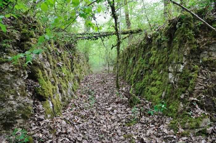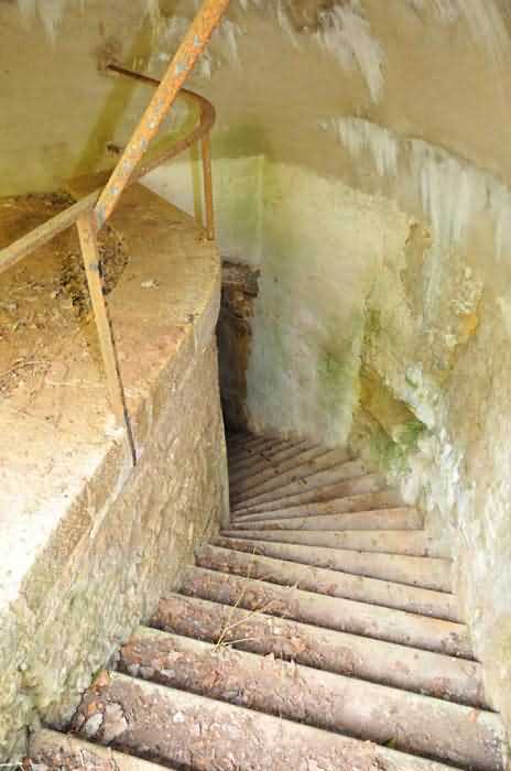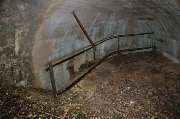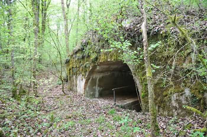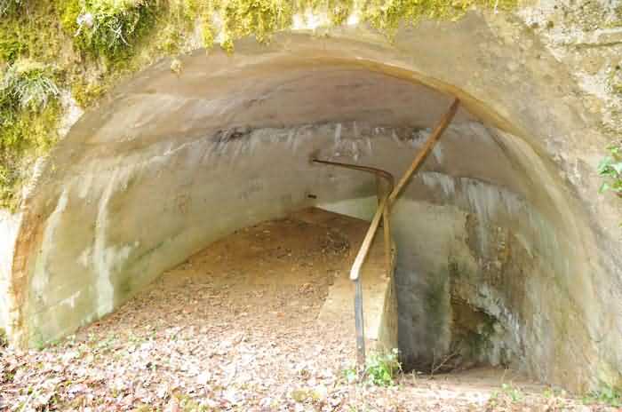 Fortress of Langres, southwest of the town, 1887-1888. 445 m/alt. One of the small infantry works typical of Langres Square, dug under the rock with two concrete entrances, 1900 m in front of Fort de la Bonnelle. Few features distinguish it from its peers. In each of the descents, a lateral niche, where four anchors (threaded rods) remain, suggests the presence of a ventilator. A cable, probably electrical, had been sealed in the wall up to the foot of the access stairs, but it has since been recovered. Curiously, no line of insulators extends the system and no generator base has been found at the barracks. Perhaps the electricity must have come from outside since the channel in the wall also leads to the stair heads. The underground part is entirely covered with a cement coating. Only the water evacuation pipes, opposite each access, remain in rough rock. The cistern is empty, which allows us to better understand its volume. Finally, in the center of the circulation corridor joining the six rooms, there is a pretty light well. Today (01/2008), the structure, particularly well preserved and clean, is abandoned not in the wood of the same name, but in a grove 250 m to the southeast.