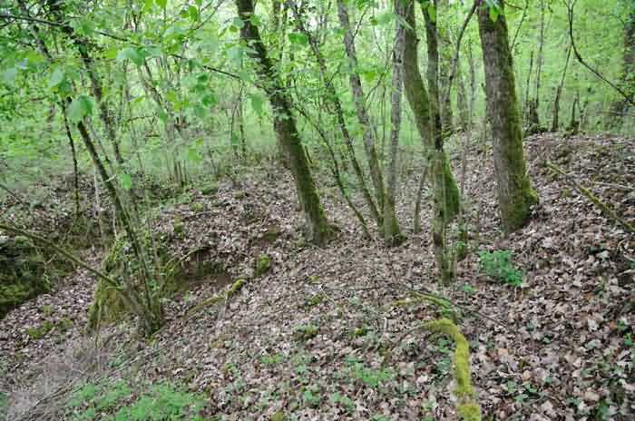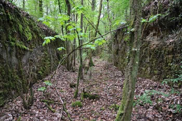 Festung von Langres, südwestlich der Stadt, 1887–1888. 445 m ü. M. Eine der für den Platz von Langres typischen kleinen Infanteriestellungen, unter dem Fels gegraben, mit zwei Betoneingängen, 1900 m vor dem Fort de la Bonnelle. Sie unterscheidet sich nur geringfügig von ähnlichen Stellungen. In jedem der Abstiege weist eine seitliche Nische mit vier Ankern (Gewindestangen) auf das Vorhandensein eines Ventilators hin. Ein wahrscheinlich elektrisches Kabel war bis zum Fuß der Zugangstreppe in der Mauer eingeschlossen, wurde aber inzwischen geborgen. Interessanterweise verläuft keine Isolatorlinie weiter, und in der Kaserne wurde kein Generatorsockel gefunden. Möglicherweise kam der Strom von außen, da der Kanal in der Mauer auch zu den Treppenaufgängen führt. Der unterirdische Teil ist vollständig mit einer Zementschicht überzogen. Nur die Wasserabflussrohre gegenüber den Zugängen sind im rauen Fels verblieben. Die Zisterne ist leer, was ihr Volumen besser einschätzt. Schließlich befindet sich in der Mitte des Verkehrskorridors, der die sechs Räume verbindet, ein hübscher Lichtschacht. Heute (01/2008) liegt das besonders gut erhaltene und saubere Gebäude nicht mehr im gleichnamigen Wald, sondern in einem Wäldchen 250 m südöstlich davon.