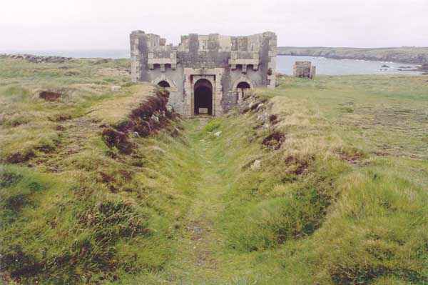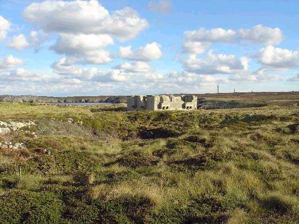 Fortress ofBrest, Ouessant Island. Located at 20 m/alt, to the north of the island, in the Bay of Benin, it is composed of a guardhouse model 1846 n° 3, built in 1862, on the left of which a parapet of ± 25 m long housed the cannons. A small building with two latrines completes the complex. The Coastal Defense Commission, in its sessions from May 18 to June 1, 1876, decided to decommission this battery which, according to Louis Le Guen (see bibliography) was occupied by a garrison, in October 1898, when an English squadron appeared. Indeed, there is mention of a restoration in 1899 so that the redoubt could serve as barracks. The site is open to all winds. Visitors should definitely head west to the tip of Penn ar Ru Meur, to try, like us, to unravel the mystery of a curious, completely atypical and difficult to date blockhouse blocking the rocky spur. Both sites are open to all winds. Sometimes spelled "Calgrac'h".