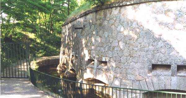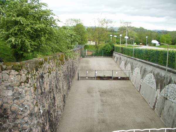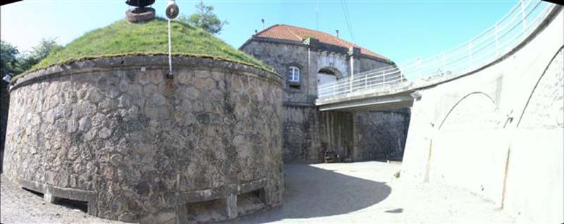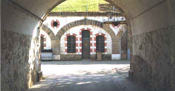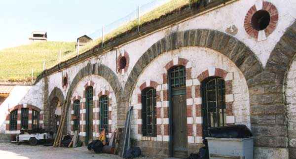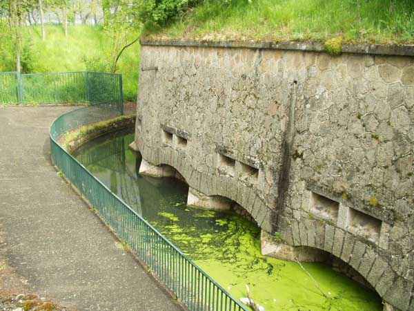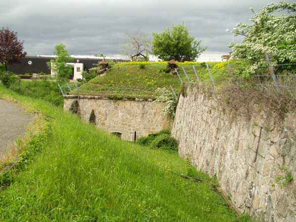 Fortress of Lyon, south of the city, 1878. 257 m/alt. 90 men. Small trapezoidal fort defended by two double caponiers (gorge and salient III) and a wing at salient II. This wing has a large visor. The entrance building is nicely covered with a tiled roof and the harmonious curve of the gorge caponier enhances its appearance. The barracks have only a single level, but cleverly mix fired brick and stone rubble with parts covered in whitish cement plaster. It has five bays framed by two covered passages. The powder magazine had a capacity of 32 tonnes. The scarp is semi-detached. The head front comprises four traverses, only the two central ones being encased. Built on the right bank of the Rhône downstream from the city, it controlled the road to Saint-Étienne. The fort is particularly well cleared of vegetation and many skylights of varied models still top the light wells. Its ditches are partially filled or devoted to the practice of pétanque. Owned by the municipality of Irigny, which houses road maintenance services there; its visit requires authorization (as of 04/2007).
