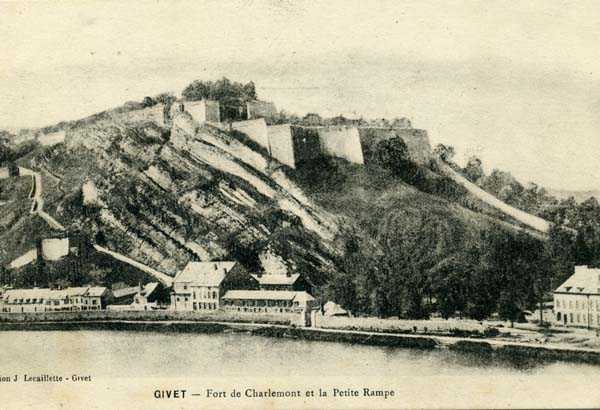Dépt 08 (Ardennes). Citadelle construite vers 1555 sous Charles Quint puis agrandie par Vauban en 1678. Élevée au rang de fort d'arrêt, elle fera l'objet de travaux, suite notamment à un avis du Conseil supérieur de la guerre, avis rendu le 10 octobre 1888. En fait, toute la plate-forme de la forteresse, hormis les fossés et les bastions, porte le sceau des constructions du système Séré de Rivières. Toutes les traverses-abri, que ce soient celles de la couronne d’Asfeld ou celles de la pointe Est, sont enrobées. Elles portent toutes un chronogramme : 1876, 1877 ou 1878 pour la pointe Est et 1882, 1883 et 1884 pour la couronne d'Asfeld (avec une exception : 1868 !). Une cheville pivot pour lisoir directeur de canon de 12 culasse a été trouvée dans une casemate de la pointe Est, ainsi que dans une cave à canon donnant vers le bastion de la Reine, témoignages d'une amélioration post-1886. Sous le bastion de la Reine, victimes d'un coup au but de calibre 305, 27 soldats reposent encore. Trois magasins à poudre, du modèle 1874, furent aménagés intra muros, soit un de part et d'autre du village de Charlemont (le plus à l'est date de 1878), village rasé par les Allemands en 1914, et un troisième, non loin de la porte de Foisches. Ce village, dont il ne subsiste que les fondations, a vu ses murs rehaussés de façon à servir de terrain d'entraînement pour les Commandos qui occupent la totalité de la forteresse. Enfin, 4 magasins sous roc ont été creusés. Le premier s'ouvre dans le fossé face au bastion de la Reine et est assez classique avec ses deux entrées et une disposition géométrique des ses pièces. Le second, en arrière du défunt village, est beaucoup plus tortueux. Un couloir en pente, couloir comportant plusieurs chicanes, relie plusieurs pièces de stockage. Les deux entrées se situent face à face et, depuis ce magasin, part une galerie joignant un escalier creusé dans le roc, escalier dont les 407 marches rejoignent le tunnel ferroviaire passant sous la colline. Un troisième a aujourd’hui conservé son usage initial et le quatrième, avec un seul local de stockage, se situe près du four à pain. Un casernement avec cour en puits de lumière est appelé localement « hôpital de siège », tandis que sous l’actuelle place d’armes, se trouve un abri caverne. Vastes citernes. En 1914, sa garnison était de l’ordre de 3 000 hommes avec une quarantaine de canons. Actuel centre d'entraînement n° 2 de Commandos. Ouvert une fois par an (début septembre) à l'occasion de journées portes ouvertes. Belle salle/musée consacrée aux traditions du 9è Zouaves. Voir Asfeld, ”Condé“ et Mont d'Haurs. Le Centre Commando inauguré par le général Massu sera, selon la nouvelle carte militaire dévoilée en juillet 2007, dissous en 2009. Nous ignorons quel sera alors le sort de la forteresse.