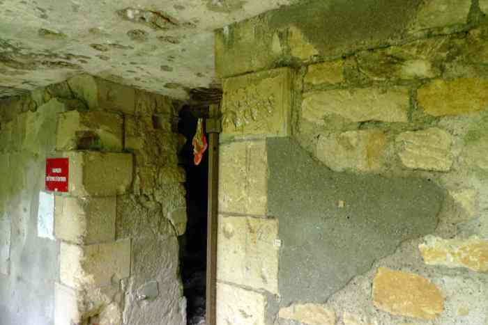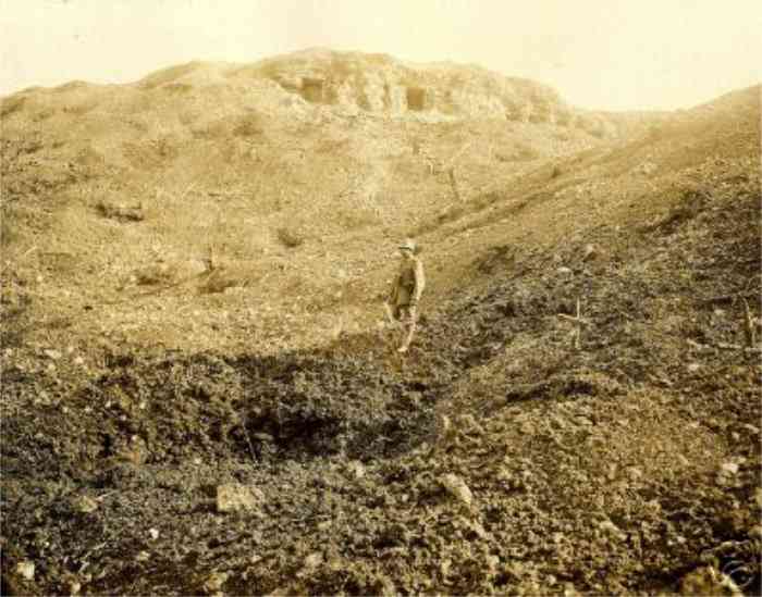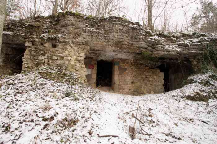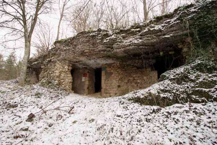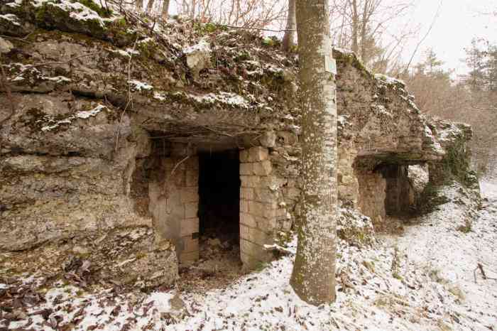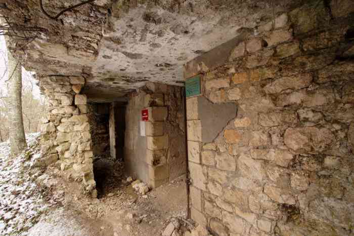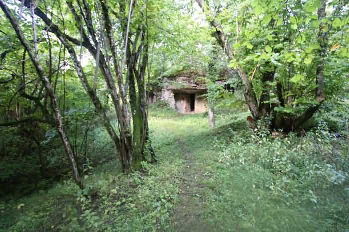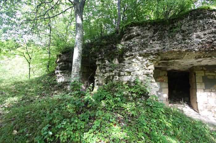 Verdun fortified camp, northeast of the city (range Douaumont – Vaux – 4), 1905-1907, for ½ company. 270 m alt. Located 400 m northwest of salient I of the fort of Vaux, practically halfway along a line joining this salient to DV-3. It had the opposite layout to DV-3, meaning the kitchen was to the left of the bedrooms and the latrines to the right. It too was captured by the Germans but not held long enough for French bombardments to pulverize its entire mask wall. The French recaptured it without resistance, the enemy having evacuated it, during the night of November 2-3, 1916. The left barracks had been pierced while the right had an impressive vault deflection of almost 50 cm. In the immediate vicinity are crosses marking the places where two French fighters fell on June 3 and 6, 1916. On the facade of the shelter, a cast iron commemorative plaque was stolen during the summer of 2010. It bore the following text: LEUTNANT D. RESERVE GUSTAV SCHIEN 6. / R.I.R. 88 20.12.84 – 02.08.16. In the lower left corner was a broken oak branch. Sometimes referred to as “shelter 4595”.