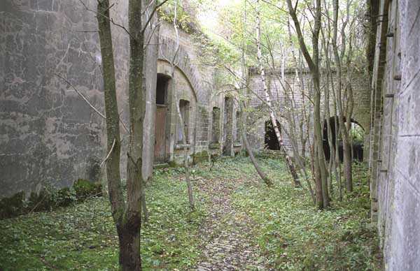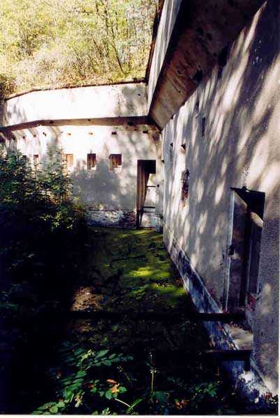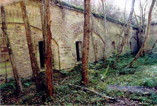 Entrenched camp of Épinal, north-northeast of the city, 1876-1878. 393 m/alt. Called fort Kléber. Modernized in 1890, then from 1908 to 1914. 1 155R turret, 2 machine gun turrets, 3 armored observation posts and 1 Bourges casemate. 262 men. Despite a modest garrison, it is a large trapezoidal fort with a counterscarp made of relieving arches. The escarpment also has such arches, but where it can still be seen, at a very marked angle, of the order of 50°, and only over a height of about 1.5 m, ± 4 m from the bottom of the ditch. These ditches are defended by single (salients II and IV) or double (S III) coffers, which, as is customary in Epinal, have a visor. This fort has a large number of peculiarities: access to the machine gun turret of salient I is from a very long gallery and the armored observatory is only accessible via an embryonic gallery opening between two buttresses of the turret shaft. The head front consists of a very long concrete shelter. The intermediate level of the 155 R turret, in salient II, is directly accessible via a corridor. The passages of the shafts leading to the vaults are equipped with a bascule bridge whose deck, provided with firing loopholes, rises to close the gallery by revealing a pit. The shaft of S II is submerged, and the most correct example of this device is visible at S IV. The double vault is enormous and the firing chambers have their floors made of beaten earth; from the outside of this vault, on both sides, an embryonic countermine system exists. Under the concrete barracks, a concrete sarcophagus was sunk into a cistern, so that it in turn acts as a cistern, but without being in contact with the walls, therefore less sensitive to the vibrations of a possible bombardment. The old powder magazine has an ogival shape, like that of Château-Lambert or Domgermain. In several places, especially in the old barracks, the occupier of the Second World War left several fairly good wall sketches. The bread oven for 200 rations is still in fairly good condition. The Bourges casemate occupies salient IV. Currently (10/2005) abandoned.