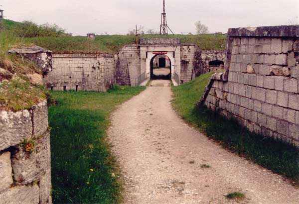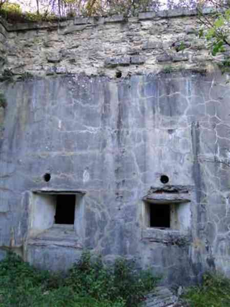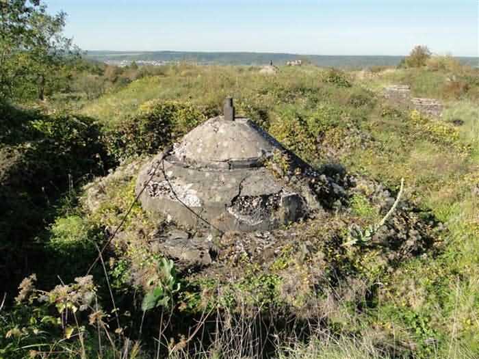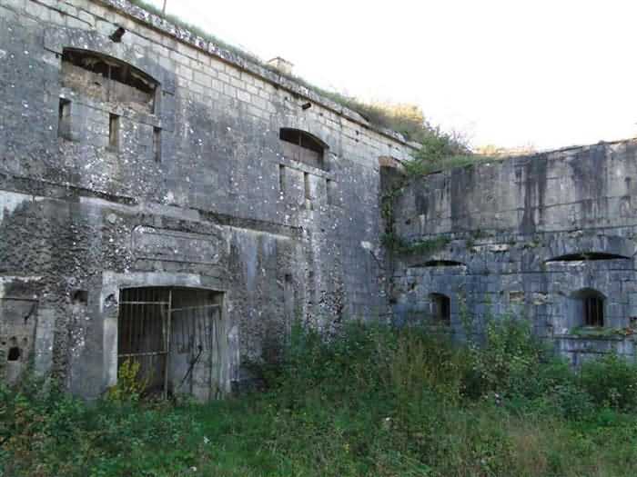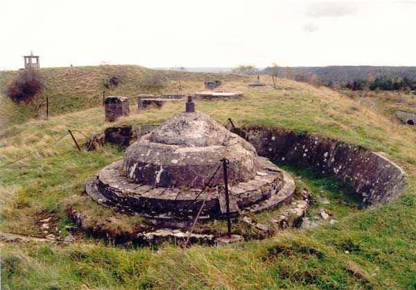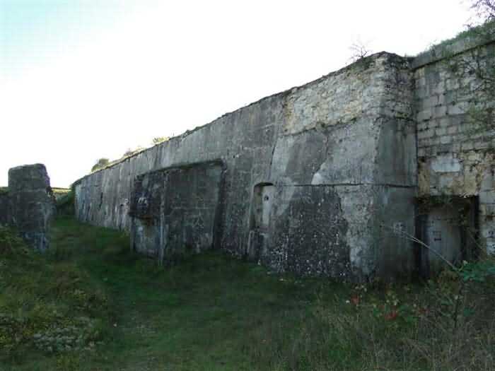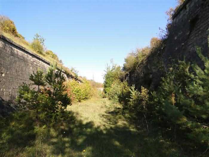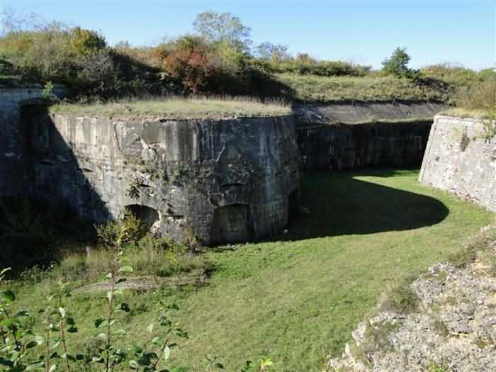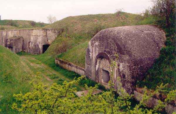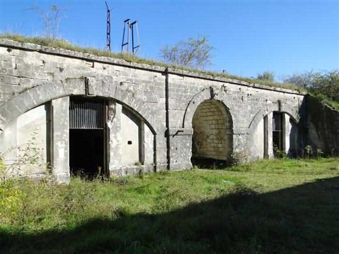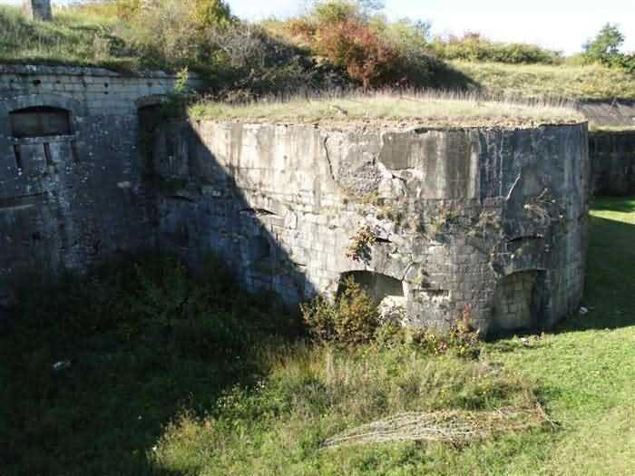 Toul fortified camp, WSW of the city, 1874-1878. 398 m/alt. Originally intended for 522 men and 40 guns. Called Fort Brune. Southern sentinel of the old thalweg that led the Moselle to the Meuse, this fort takes the form of an irregular pentagon with a slightly recessed gorge. The angle of the gorge is occupied by a double caponier. The entrance porch is set back very slightly from the line of the escarpment, just enough to allow for a perpendicular defense by a small crenelation on either side of the passage. To the left of this entrance porch, a line of eight crenellated casemates overlooking the gorge served as barracks for the officers with their kitchen and dining room. Once through the entrance porch, a first courtyard opened onto a first barracks for the troops, with two times three bays on a single level separated by the passage of the capital. The rampart street opened into this courtyard both on the left and on the right. Continuing in the capital, one then came out onto the main courtyard which showed a second barracks for the troops (+ infirmary) with seven bays. These seven bays were surmounted by a small cavalier composed of three shelter-crossbars which were separated from the barracks by an intermediate level at the rear of which ran a connecting corridor. This cavalier extended behind the front IV-V with two other hollow crossbars. The powder magazine, ogival and with a side entrance, is located to the left of the main courtyard. Its storage room, lined with a brick partition covered with cement, had a capacity of 83,000 kg. Its three lamp battlements are not aligned, the central one being offset upwards. The rampart street served three shelter traverses on front I-II as well as two on each of the other fronts, except the gorge which had none. The access shaft to the wing of salient IV opened into a direct fire casemate, a casemate aimed at the thalweg in question. A double caponier at salient III and another wing at salient II completed the defense of the ditches. A casemated optical post occupied salient V and cisterns were located under the counterscarp at the gorge, opposite the officers' quarters. It had four battlements whose directions seem, with reservations, to correspond to Écrouves, Saint-Michel, Toul town and Blénod via Charmes. In 1894, a concrete barracks with four barracks was cast to the right of the gorge caponier, opening onto the gorge and communicating with the rampart street via a spiral staircase. Between 1907 and 1910, a much more substantial overhaul resulted in the concreting of the entire block of premises overlooking the first courtyard, a block now communicating with a war entrance opening slightly to the right of the original entrance but at the bottom of the ditch, the replacement of the caponiers of salients II, III and IV by counterscarp boxes, and also the covering of the gorge caponier with a substantial thickness of concrete. A Bourges casemate, with two large ventilation vents at the rear, fitted to the left of the access shaft to the trunk of salient II, a shaft also providing access to an armored observation post, most likely that of the machine gun turret sitting behind salient III, which turret was also to benefit from information from a second armored observation post located at the entrance to the access shaft to the trunk of salient IV. A 75mm turret replaced the direct-fire casemate on the central massif side of the rue du rempart. This turret had its own armored observation post placed directly behind it. Probably during the First World War, the cavalier's platforms were brought up to the level of the top of its traverses and two rather special concrete tanks for 75mm anti-aircraft guns were installed there. Note that the counterscarp of the ditch is sometimes unlined and that the widening of the ditch at the level of the old ailerons have survived. 9 auxiliary batteries between it and the Charmes fort, as well as 1 cave shelter, 2 combat shelters and 3 rock magazines. A project to install an auxiliary armored battery for 2 155 R turrets was never realized (100 m NE of salient V). The fort would serve as an ammunition depot until the 1980s. Visited in November 1996, the fort, well cleared of vegetation, appeared to us to be in average condition; graffiti was almost non-existent and the few signs of damage were more due to the ravages of time. The three armored observation posts were in place, as well as the 75 R turret, the latter without its guns. As for the machine gun turret, it had lost its cap and counterweight. According to the latest news (07/2007), the fort is still open to all winds but is now very degraded and soiled by graffiti and all kinds of dirt.