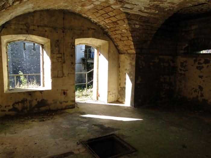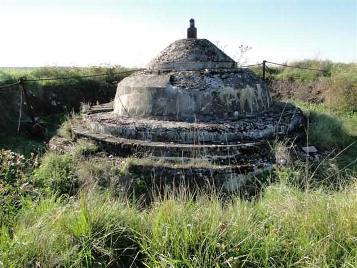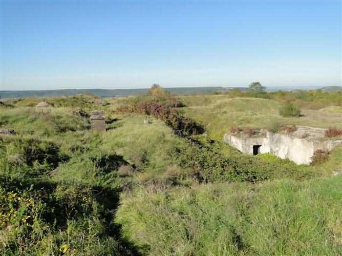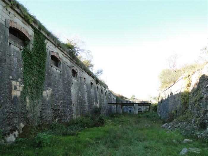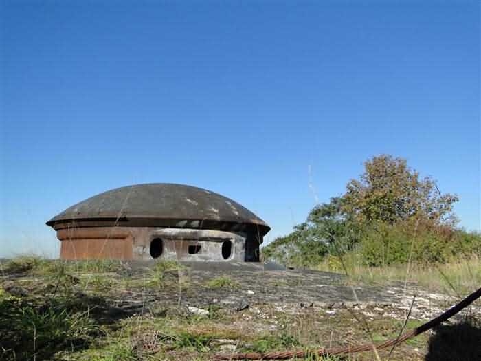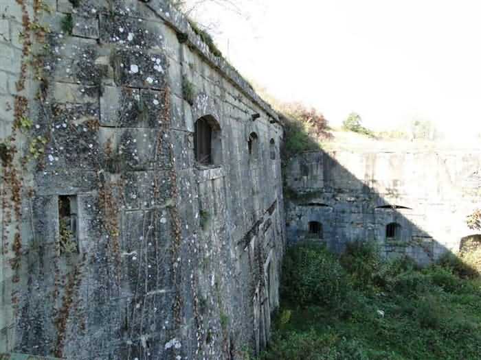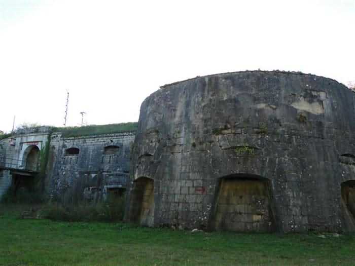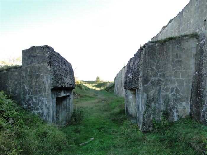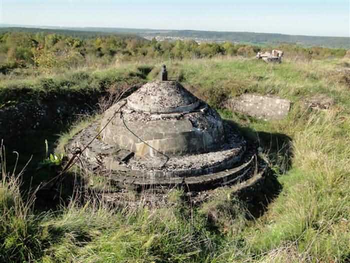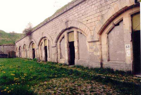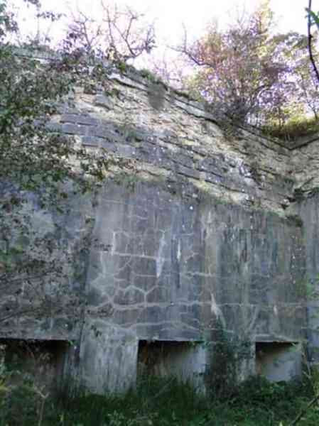 Toul fortified camp, WSW of the city, 1874-1878. 398 m/alt. Originally intended for 522 men and 40 guns. Called Fort Brune. Southern sentinel of the old thalweg that led the Moselle to the Meuse, this fort takes the form of an irregular pentagon with a slightly recessed gorge. The angle of the gorge is occupied by a double caponier. The entrance porch is set back very slightly from the line of the escarpment, just enough to allow for a perpendicular defense by a small crenelation on either side of the passage. To the left of this entrance porch, a line of eight crenellated casemates overlooking the gorge served as barracks for the officers with their kitchen and dining room. Once through the entrance porch, a first courtyard opened onto a first barracks for the troops, with two times three bays on a single level separated by the passage of the capital. The rampart street opened into this courtyard both on the left and on the right. Continuing in the capital, one then came out onto the main courtyard which showed a second barracks for the troops (+ infirmary) with seven bays. These seven bays were surmounted by a small cavalier composed of three shelter-crossbars which were separated from the barracks by an intermediate level at the rear of which ran a connecting corridor. This cavalier extended behind the front IV-V with two other hollow crossbars. The powder magazine, ogival and with a side entrance, is located to the left of the main courtyard. Its storage room, lined with a brick partition covered with cement, had a capacity of 83,000 kg. Its three lamp battlements are not aligned, the central one being offset upwards. The rampart street served three shelter traverses on front I-II as well as two on each of the other fronts, except the gorge which had none. The access shaft to the wing of salient IV opened into a direct fire casemate, a casemate aimed at the thalweg in question. A double caponier at salient III and another wing at salient II completed the defense of the ditches. A casemated optical post occupied salient V and cisterns were located under the counterscarp at the gorge, opposite the officers' quarters. It had four battlements whose directions seem, with reservations, to correspond to Écrouves, Saint-Michel, Toul town and Blénod via Charmes. In 1894, a concrete barracks with four barracks was cast to the right of the gorge caponier, opening onto the gorge and communicating with the rampart street via a spiral staircase. Between 1907 and 1910, a much more substantial overhaul resulted in the concreting of the entire block of premises overlooking the first courtyard, a block now communicating with a war entrance opening slightly to the right of the original entrance but at the bottom of the ditch, the replacement of the caponiers of salients II, III and IV by counterscarp boxes, and also the covering of the gorge caponier with a substantial thickness of concrete. A Bourges casemate, with two large ventilation vents at the rear, fitted to the left of the access shaft to the trunk of salient II, a shaft also providing access to an armored observation post, most likely that of the machine gun turret sitting behind salient III, which turret was also to benefit from information from a second armored observation post located at the entrance to the access shaft to the trunk of salient IV. A 75mm turret replaced the direct-fire casemate on the central massif side of the rue du rempart. This turret had its own armored observation post placed directly behind it. Probably during the First World War, the cavalier's platforms were brought up to the level of the top of its traverses and two rather special concrete tanks for 75mm anti-aircraft guns were installed there. Note that the counterscarp of the ditch is sometimes unlined and that the widening of the ditch at the level of the old ailerons have survived. 9 auxiliary batteries between it and the Charmes fort, as well as 1 cave shelter, 2 combat shelters and 3 rock magazines. A project to install an auxiliary armored battery for 2 155 R turrets was never realized (100 m NE of salient V). The fort would serve as an ammunition depot until the 1980s. Visited in November 1996, the fort, well cleared of vegetation, appeared to us to be in average condition; graffiti was almost non-existent and the few signs of damage were more due to the ravages of time. The three armored observation posts were in place, as well as the 75 R turret, the latter without its guns. As for the machine gun turret, it had lost its cap and counterweight. According to the latest news (07/2007), the fort is still open to all winds but is now very degraded and soiled by graffiti and all kinds of dirt.