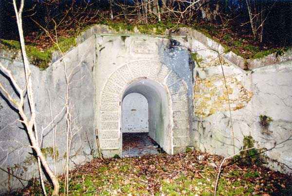 Toul fortified camp, southeast of the city, 189? Rock-based store with three entrances, two of which are filled in by the highway embankment. Two large storage rooms. With some difficulty, you can enter through the third (02/2001).