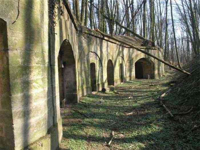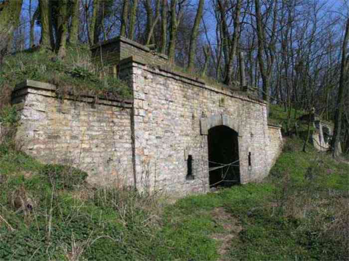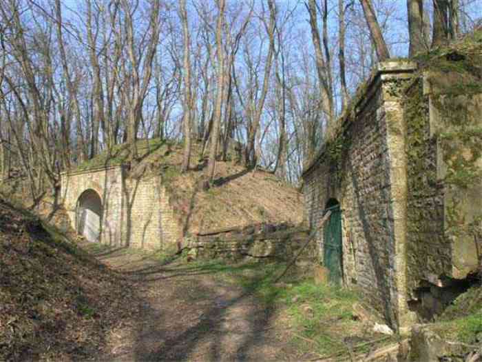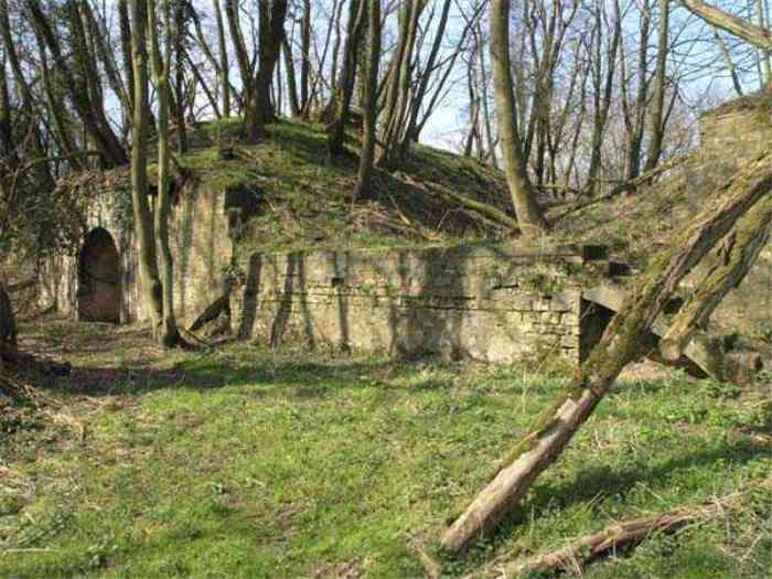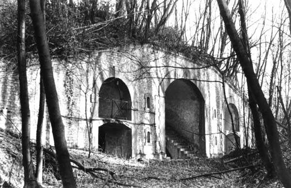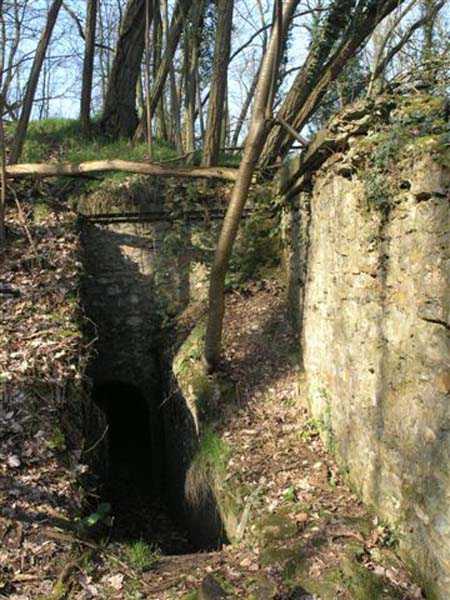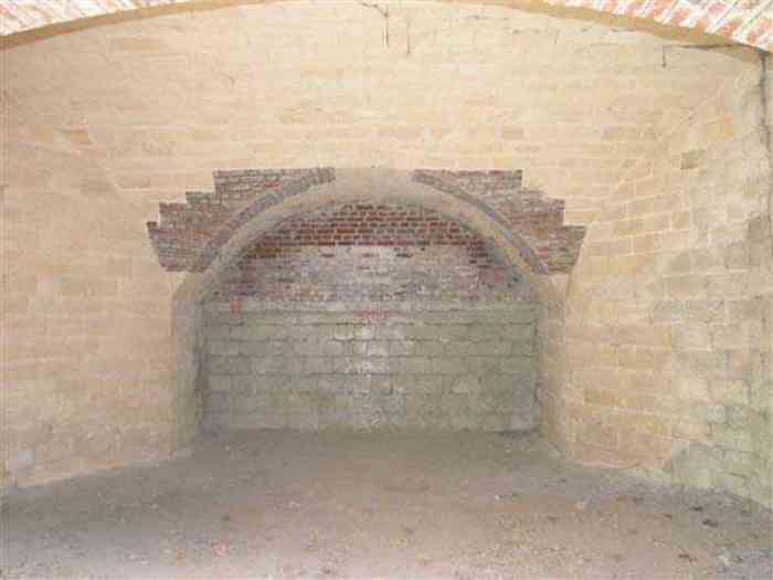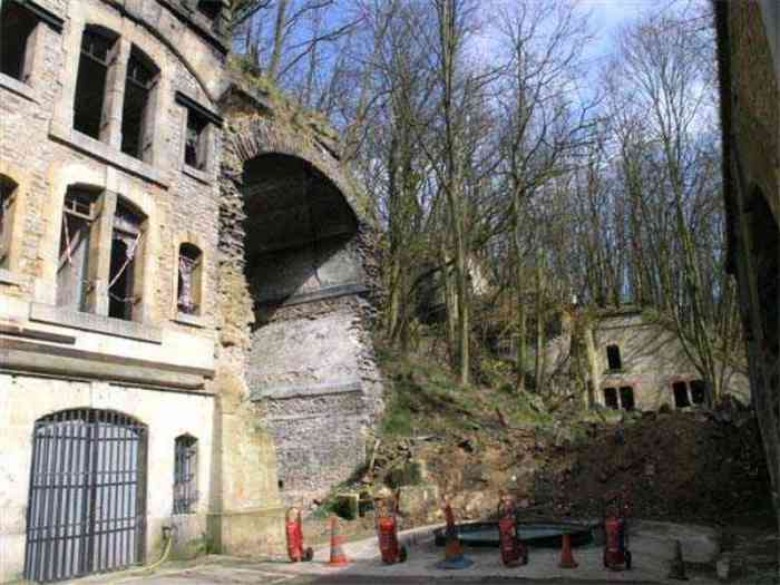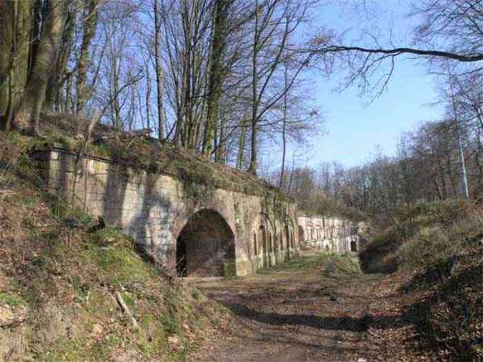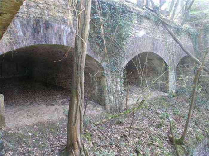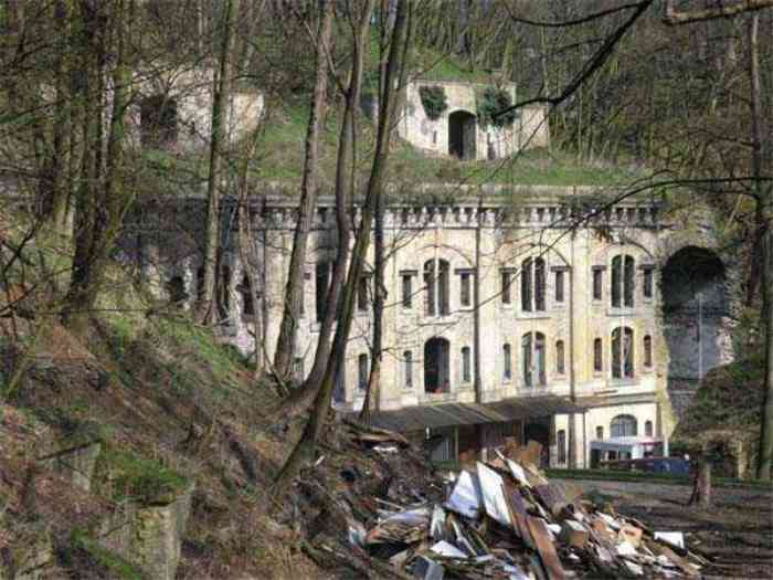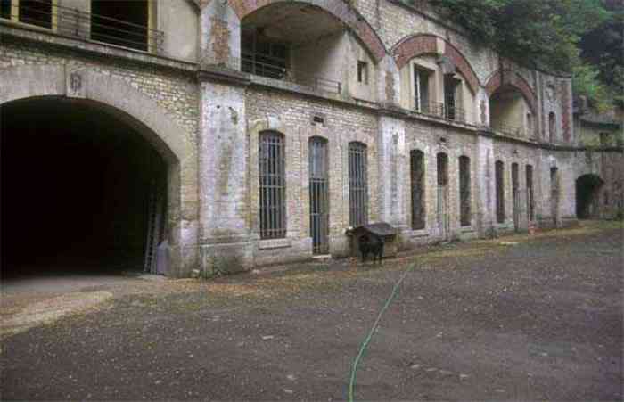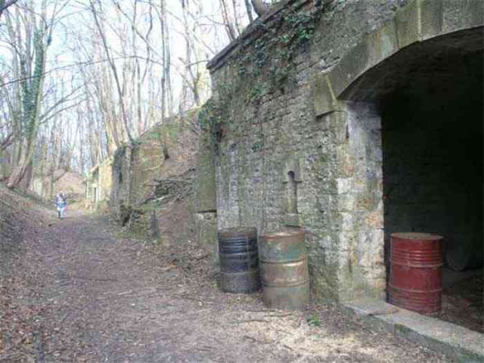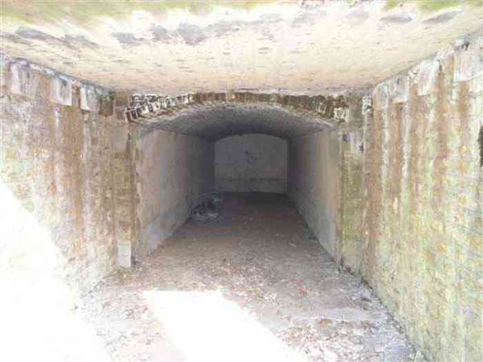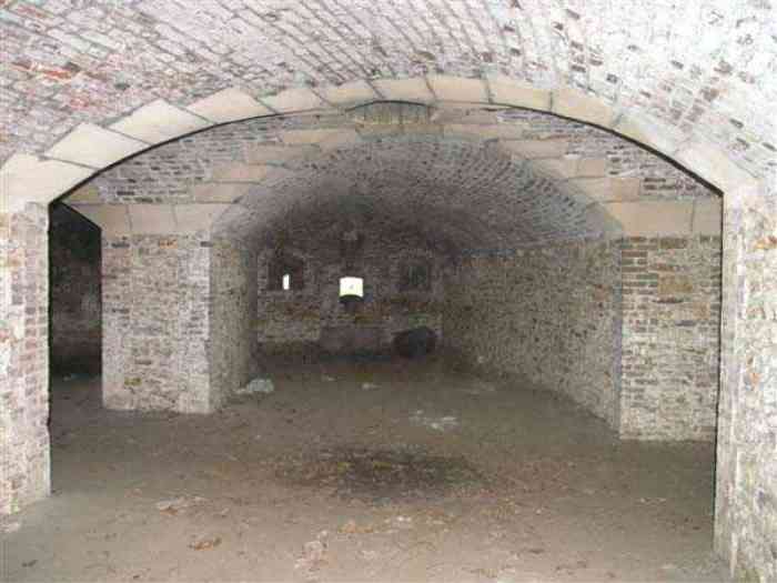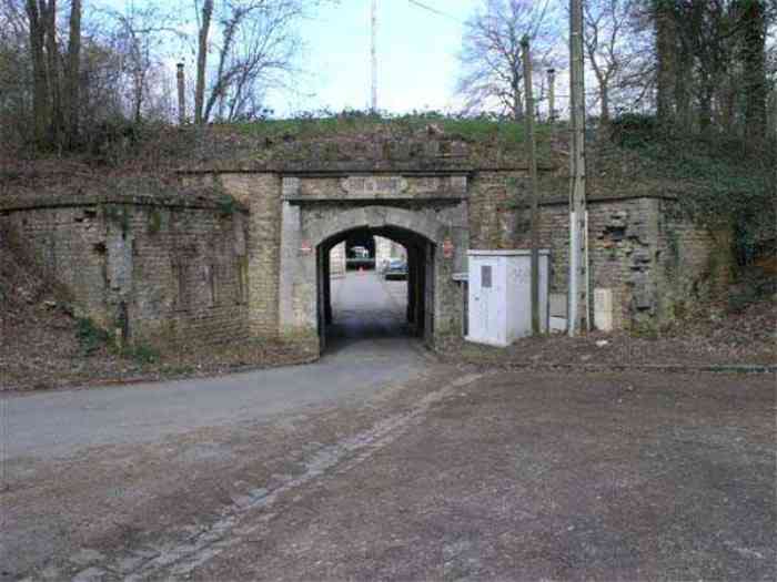 Fortress Paris, north of the city, 1874-1878. 202 m/alt. Large cavalier fort for 1175 men and 74 guns including 2 under Mougin Mle 1876 turret, it has the shape of a pentagon whose salients I and V form practically right angles with the gorge, the head front being broken in chevron. For the defense of its ditches, it relied on two simple caponiers with three guns per direction of fire (Salients II and IV) and two double ones (gorge and salient III). The gorge ditch is twenty meters wide! The scarp is semi-detached and the counterscarp aligns the arches of the vaults in relief. The counterscarp entrance has a small curtain wall. Once through this entrance, one emerges opposite a second curtain wall framing two bays and the scarp entrance porch. This curtain wall is defended by two coffers on each side and, before reaching it, one must pass in front of the embrasures of the double caponier. The escarpment entrance still has its rolling bridge with lateral retraction. Once through the entrance porch, one finds oneself in a superb tunnel with a basket-handle vault opening out in front of the seven bays on two floors of the officers' barracks. To its left are three indirect fire casemates, while two others occupy its right. Behind it, the troop barracks has lost much of its splendor; of its eleven bays, only the six on the left remain, the right part, with the bread ovens, having completely collapsed. The remaining bays are unfortunately used for fire drills and the facades are blackened. Behind the barracks, an envelope gallery serves all the artillery traverses of the cavalier as well as, near each of its ends, two powder magazines totaling a maximum storage capacity of 187,786 kg. A lightning rod still covers the one on the left. All the artillery traverses, whether of the cavalier or the lower battery, are of the 1879 model. We will note, however, the exceptional presence of a triple-axle carriage sliding on metal beams surmounting the shaft of the traverse capping the first bay of the barracks. This vestige, perhaps unique, unfortunately suffered from fires started from below while it deserves special attention. Some of the cavalier traverses, including this one, communicate with the envelope gallery via a large shaft for supplying ammunition and even cannons; as for the traverses of the lower battery, all have two levels. Following the capital, between the cavalier and the lower battery, at the level of the latter, we find two other indirect fire casemates, which are installed directly behind the enormous masonry mass of the Mougin turret. The latter, received on 20/12/1884, although devoid of its guns and having retained only stubs of carriages, still has a proud appearance. It is worth noting the presence of its boiler in a room to the right of its building. The double head caponier is impressive by its dimensions, as well as those of its ditches in front of the embrasures. Like many other forts in the place, a 1911 project, which was not followed up, granted it a 75 mm turret, two others for machine guns, a concrete shelter for part of the garrison and counterscarp chests. This fort fired a few shells in September 1914 on advanced elements of German cavalry. The concrete observation towers atop the cavalier date from this period, or probably shortly after. It was supported to the east by the Blémur battery. Between the two wars, it housed an anti-aircraft battery. Today (March 2007), the fort is owned by the French National Forestry Office (ONF), which seems to have little regard for the damage suffered by these venerable buildings, whether by bad weather or firefighter drills.