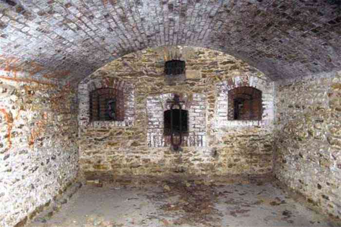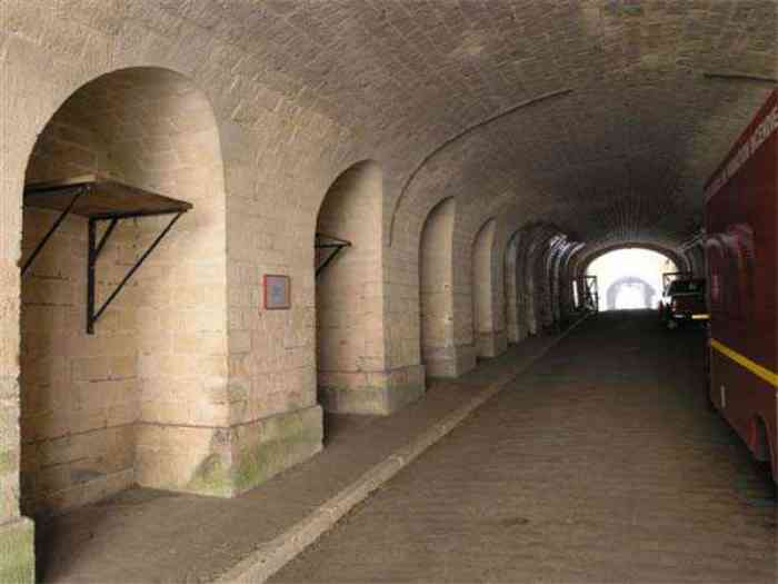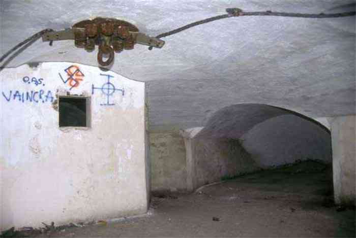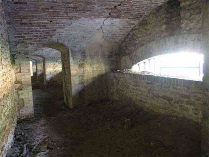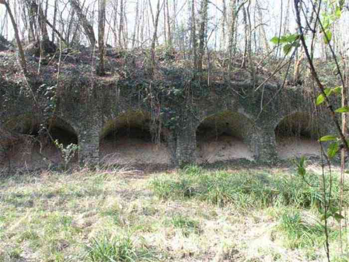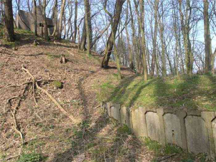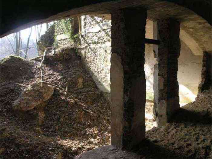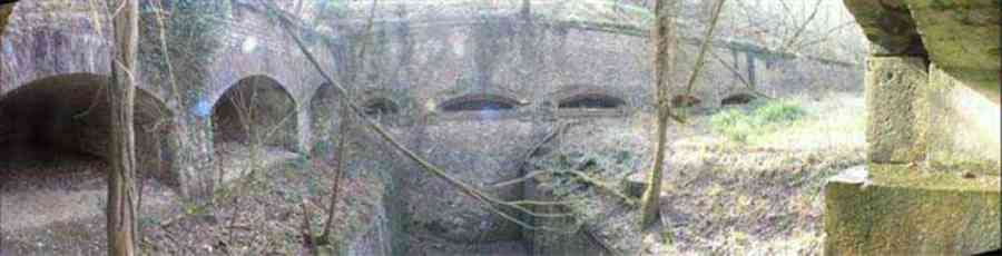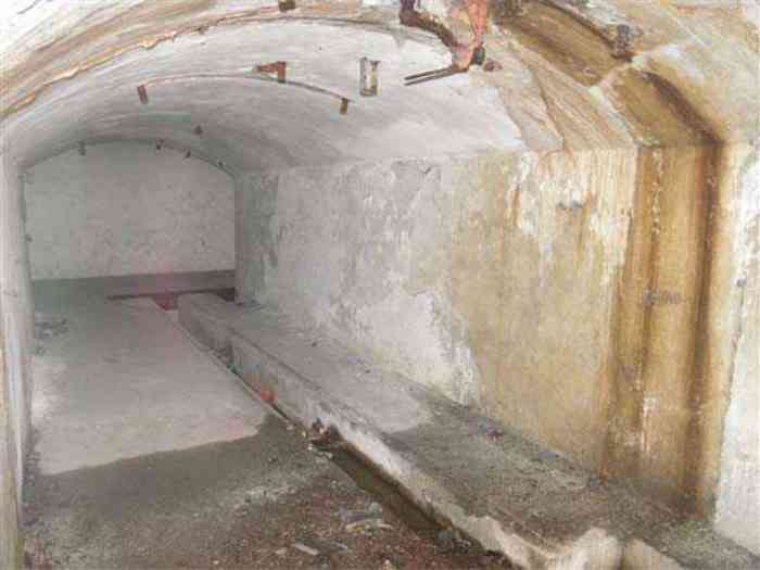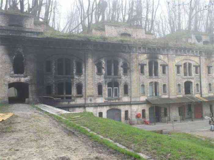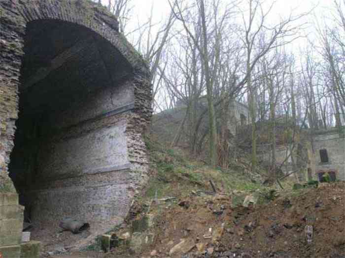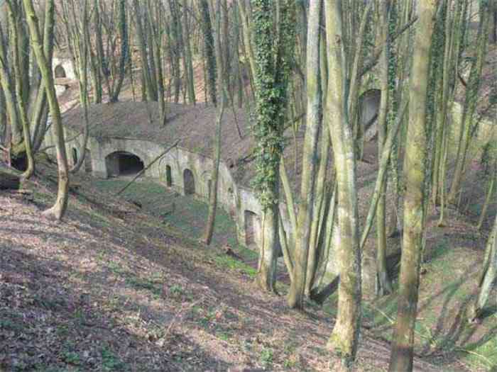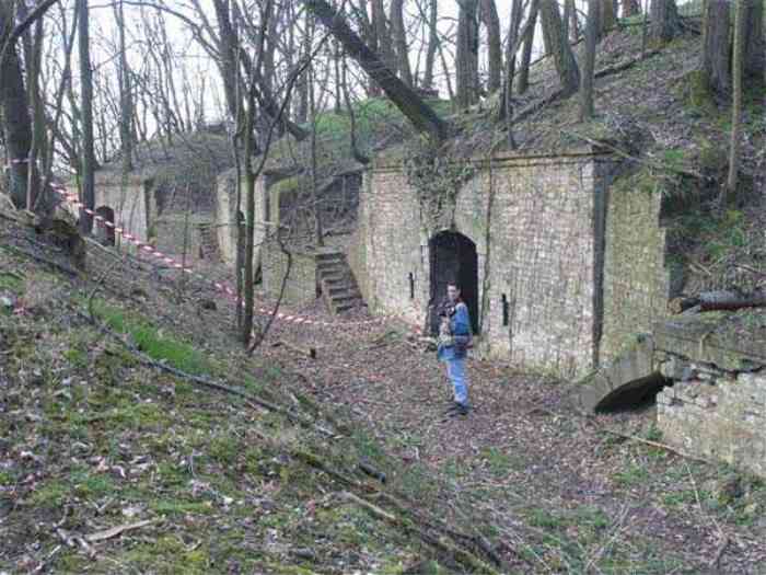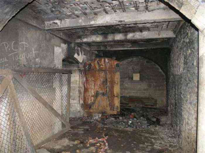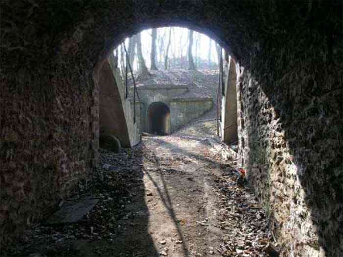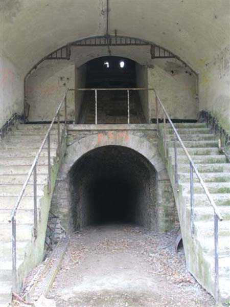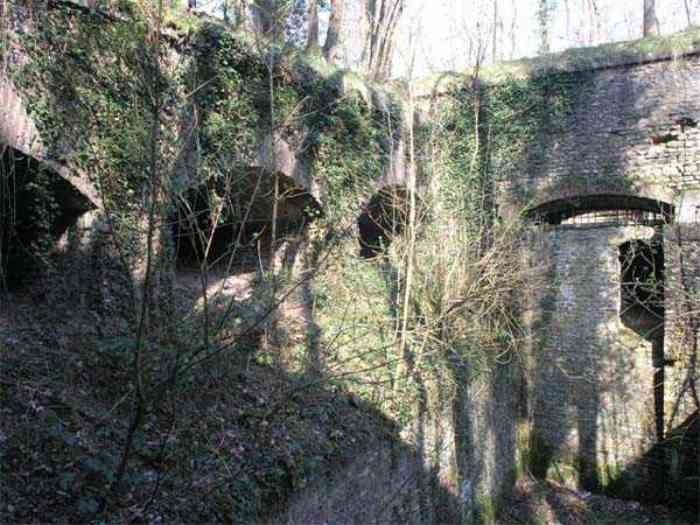 Fortress Paris, north of the city, 1874-1878. 202 m/alt. Large cavalier fort for 1175 men and 74 guns including 2 under Mougin Mle 1876 turret, it has the shape of a pentagon whose salients I and V form practically right angles with the gorge, the head front being broken in chevron. For the defense of its ditches, it relied on two simple caponiers with three guns per direction of fire (Salients II and IV) and two double ones (gorge and salient III). The gorge ditch is twenty meters wide! The scarp is semi-detached and the counterscarp aligns the arches of the vaults in relief. The counterscarp entrance has a small curtain wall. Once through this entrance, one emerges opposite a second curtain wall framing two bays and the scarp entrance porch. This curtain wall is defended by two coffers on each side and, before reaching it, one must pass in front of the embrasures of the double caponier. The escarpment entrance still has its rolling bridge with lateral retraction. Once through the entrance porch, one finds oneself in a superb tunnel with a basket-handle vault opening out in front of the seven bays on two floors of the officers' barracks. To its left are three indirect fire casemates, while two others occupy its right. Behind it, the troop barracks has lost much of its splendor; of its eleven bays, only the six on the left remain, the right part, with the bread ovens, having completely collapsed. The remaining bays are unfortunately used for fire drills and the facades are blackened. Behind the barracks, an envelope gallery serves all the artillery traverses of the cavalier as well as, near each of its ends, two powder magazines totaling a maximum storage capacity of 187,786 kg. A lightning rod still covers the one on the left. All the artillery traverses, whether of the cavalier or the lower battery, are of the 1879 model. We will note, however, the exceptional presence of a triple-axle carriage sliding on metal beams surmounting the shaft of the traverse capping the first bay of the barracks. This vestige, perhaps unique, unfortunately suffered from fires started from below while it deserves special attention. Some of the cavalier traverses, including this one, communicate with the envelope gallery via a large shaft for supplying ammunition and even cannons; as for the traverses of the lower battery, all have two levels. Following the capital, between the cavalier and the lower battery, at the level of the latter, we find two other indirect fire casemates, which are installed directly behind the enormous masonry mass of the Mougin turret. The latter, received on 20/12/1884, although devoid of its guns and having retained only stubs of carriages, still has a proud appearance. It is worth noting the presence of its boiler in a room to the right of its building. The double head caponier is impressive by its dimensions, as well as those of its ditches in front of the embrasures. Like many other forts in the place, a 1911 project, which was not followed up, granted it a 75 mm turret, two others for machine guns, a concrete shelter for part of the garrison and counterscarp chests. This fort fired a few shells in September 1914 on advanced elements of German cavalry. The concrete observation towers atop the cavalier date from this period, or probably shortly after. It was supported to the east by the Blémur battery. Between the two wars, it housed an anti-aircraft battery. Today (March 2007), the fort is owned by the French National Forestry Office (ONF), which seems to have little regard for the damage suffered by these venerable buildings, whether by bad weather or firefighter drills.