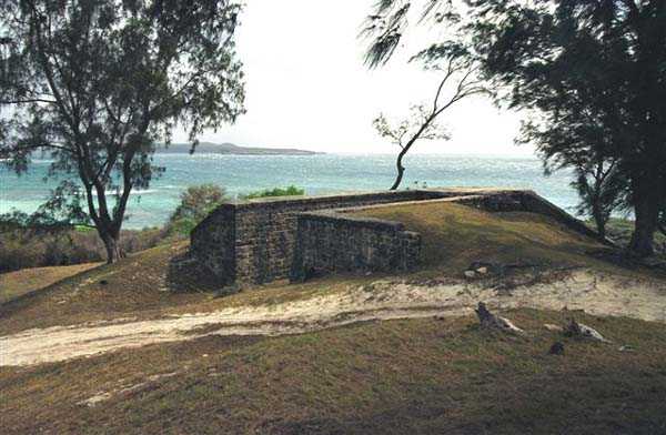 Diego-Suarez. In der herrlichen Kulisse der Dünenbucht gelegen, südöstlich von Kap Miné, umfasst dieser Standort einen Gefechtsunterstand für einen Scheinwerfer und dessen Maschinenunterstand. Die Wände beider Elemente sind gemauert, die Dächer aus Stahlbeton. Der Gefechtsunterstand ist nach hinten durch zwei Mauern verlängert, die einen Graben bilden, der, überdeckt, den Tagesunterstand für den 90-cm-Scheinwerfer bildete. In der Nähe sind die Ruinen eines kleinen Gebäudes für das Personal sichtbar. Es ist möglich, aber nicht bestätigt, dass dieser Unterstand 1942 für den 150-GP-Scheinwerfer der 16,4-cm-Batterie Modell 1893-96 du Point de Vue wiederverwendet wurde, die sich auf dem Kamm in der Nähe befindet. JJM 02/12/07
