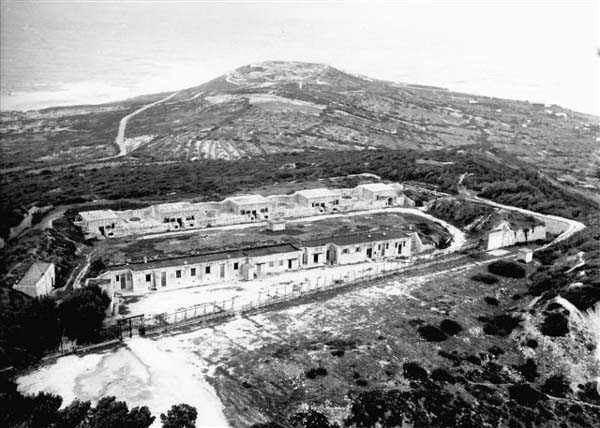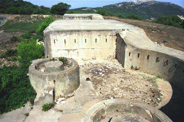 Bizerte. Situé à 2 kilomètres au sud-ouest du cap Bizerte, le djebilet Rara culmine à 170 mètres. Dès 1898, il est prévu d’y installer une batterie de 4 mortiers de 270. Il faut attendre le programme de 1900 pour voir le projet approuvé par le ministre. En novembre de la même année, la batterie de mortiers est supprimée du programme, et remplacée par une batterie de bombardement, armée de 4 canons G de 19 cm Mle 1878 sur affût G PC. C’est la seule batterie de Bizerte dont le champ de tir soit axé vers le Nord, pour couvrir les abords du cap Blanc. L’ouvrage est modernisé à partir de 1904. Il est alors doté de 4 canons G de 240 Mle 1884 sur affût G à châssis circulaire amélioré, et d’abris de combat bétonnés, du modèle adopté par la CEPAC en 1901. Il ne possède pas de magasin caverne, mais d’un magasin de surface bétonné, relié aux alvéoles par une voie de 40. C’est un ouvrage polygonal, protégé sur son front et ses flancs par un fossé, avec escarpe et contrescarpe maçonnées. La gorge est protégée par une grille défensive et l’ensemble est flanqué par 2 coffres de contrescarpe. Sa mission étant primordiale, la batterie n’est privée que d’un seul de ses canons au cours de la Première Guerre mondiale. Elle est réarmée, au cours des années 20, avec des canons de 240 Mle 1884 sur affût 1901-21. Deux pièces sont disposées aux 2 extrémités de l’ancienne batterie, et les 2 autres dans deux alvéoles bétonnées situées de part et d’autre de l’enceinte. Un PDT bétonné, recouvert d’un blindage de 20 cm, est réalisé, à 100 mètres au sud-ouest des pièces. Les matériels sont capturés intacts par les forces de l’Axe en novembre 1942, et détruits par les troupes italiennes avant leur départ. En 1952, on envisage de réarmer la batterie avec 4 canons de 105 SKC/32, comme pour la batterie du Remel. Ce projet ne sera pas réalisé. Comme c’est le cas pour la plupart des ouvrages ex-français, le site du djebilet Rara est toujours militaire et sert de terrain d’exercice à l’armée tunisienne. JJM 14/10/07