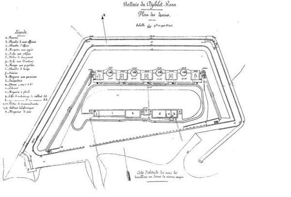 Bizerta. LeĹľĂcĂ 2 kilometry jihozápadnÄ› od mysu Bizerta, vrcholĂ hora Rara ve 170 metrech. JiĹľ v roce 1898 je plánováno tam instalovat baterii 4 moĹľdĂřů 270. Je tĹ™eba poÄŤkat na program 1900, aby byl projekt schválen ministrem. V listopadu tĂ©hoĹľ roku je moĹľdĂĹ™ová baterie ze programu vyškrtnuta a nahrazena bombardovacĂ bateriĂ, vyzbrojenou 4 dÄ›ly G 19 cm Mle 1878 na lafetÄ› G PC. Je to jediná baterie v Bizerte, jejĂĹľ palebnĂ˝ vÄ›jĂĹ™ je orientován na sever, aby kryla pĹ™Ăstupy k mysu Blanc. DĂlo je modernizováno od roku 1904. Je pak vybaveno 4 dÄ›ly G 240 Mle 1884 na vylepšenĂ© G lafetÄ› s kruhovĂ˝m podvozkem a betonovĂ˝mi bojovĂ˝mi Ăşkryty, podle modelu pĹ™ijatĂ©ho CEPAC v roce 1901. Nemá kapesnĂ skladištÄ›, ale betonovĂ© povrchovĂ© skladištÄ›, spojenĂ© s postavenĂmi 40 cm kolejĂ. Je to polygonálnĂ dĂlo, chránÄ›nĂ© na svĂ© ÄŤelnĂ stranÄ› a bocĂch pĹ™Ăkopem s zdÄ›nĂ˝m lĂcem a protilĂcem. Hrdlo je chránÄ›no obrannou mřÞà a celek je kĹ™Ădlen 2 kasematami v protilĂci. JejĂ mise je prvoĹ™adá, baterie je bÄ›hem prvnĂ svÄ›tovĂ© války pĹ™ipravena pouze o jedno ze svĂ˝ch dÄ›l. Je pĹ™ezbrojena bÄ›hem 20. let dÄ›ly 240 Mle 1884 na lafetÄ› 1901-21. DvÄ› dÄ›la jsou umĂstÄ›na na dvou koncĂch starĂ© baterie a dvÄ› dalšà ve dvou betonovĂ˝ch postavenĂch umĂstÄ›nĂ˝ch po obou stranách ohrazenĂ. BetonovĂ© PDT, pokrytĂ© 20 cm pancĂĹ™em, je zĹ™Ăzeno 100 metrĹŻ jihozápadnÄ› od dÄ›l. Materiál je ukoĹ™istÄ›n nepoškozen silami Osy v listopadu 1942 a zniÄŤen italskĂ˝mi vojsky pĹ™ed jejich odchodem. V roce 1952 se uvaĹľuje o pĹ™ezbrojenĂ baterie 4 dÄ›ly 105 SKC/32, jako u baterie Remel. Tento projekt nebude realizován. Jako je tomu u vÄ›tšiny bĂ˝valĂ˝ch francouzskĂ˝ch dÄ›l, je stanovištÄ› hory Rara stále vojenskĂ© a sloužà tuniskĂ© armádÄ› jako cviÄŤištÄ›. JJM 14/10/07