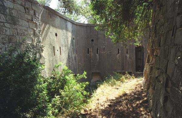 Bizerte. Located 2 kilometers southwest of Cape Bizerte, the Djebilet Rara peaks at 170 meters. As early as 1898, it was planned to install a battery of 4 270 mm mortars there. One had to wait for the 1900 program to see the project approved by the minister. In November of the same year, the mortar battery was removed from the program and replaced by a bombardment battery, armed with 4 G guns 19 cm Mle 1878 on carriage G PC. It is the only battery in Bizerte whose field of fire is oriented to the North, to cover the approaches to Cape Blanc. The work was modernized starting in 1904. It was then equipped with 4 G guns 240 Mle 1884 on improved G carriage with circular chassis, and concrete combat shelters, of the model adopted by the CEPAC in 1901. It does not have a cavern magazine, but a concrete surface magazine, connected to the emplacements by a 60 cm gauge track. It is a polygonal work, protected on its front and flanks by a ditch, with masonry escarp and counterscarp. The gorge is protected by a defensive grill and the whole is flanked by 2 counterscarp coffers. Its mission being of primary importance, the battery was deprived of only one of its guns during the First World War. It was rearmed, during the 1920s, with guns 240 Mle 1884 on carriage 1901-21. Two pieces are placed at the two extremities of the old battery, and the two others in two concrete emplacements located on either side of the enclosure. A concrete FCB, covered with 20 cm of armor, is built, 100 meters southwest of the pieces. The equipment was captured intact by Axis forces in November 1942 and destroyed by Italian troops before their departure. In 1952, consideration was given to rearming the battery with 4 guns 105 SKC/32, as for the Remel battery. This project was not realized. As is the case for most former French works, the Djebilet Rara site is still military and serves as a training ground for the Tunisian army. JJMÂ 14/10/07