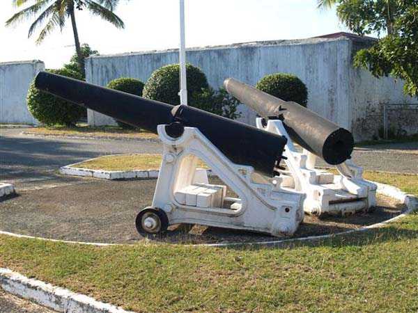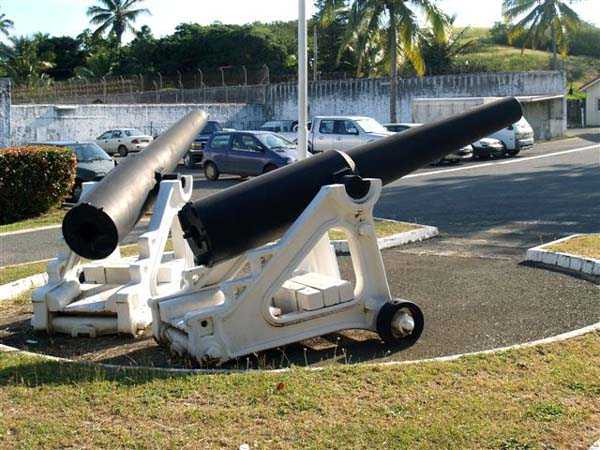 Nouméa. The Pointe Desnouel battery is one of the first built for the defence of the small roadstead. Constructed at level 47, it was initially armed with 2 30-pounder guns, replaced after 1870 by 16 cm pieces Mle 1858-60 on carriage Mle 1847. The definitive battery was completed in 1896. It is armed with 4 14 cm guns Mle 1870 on carriage Mle 1847. During a test firing of the battery, a barrel and its carriage were violently expelled from their chassis, which led to a firing ban for all works armed with this type of piece until the modification of the carriages in 1899. The battery was downgraded in 1906. Nowadays, the battery has completely disappeared from the landscape, the site having been used as a quarry for several years. Two of its guns are displayed in the courtyard of the nearby prison centre. They are unfortunately without their chassis. JJM 30/06/07