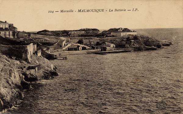 Fortress of Marseille, south-west of the city. 5 m/asl. Old battery about which little is known, except that it was reorganised from 1877 to 1878 and armed with 2 - 19 cm Mle 1878 guns on G PC carriage and 4 - 24 cm Mle 1876 guns on G PC carriage. Access forbidden.