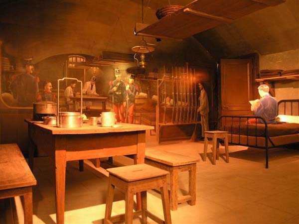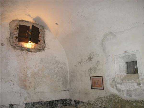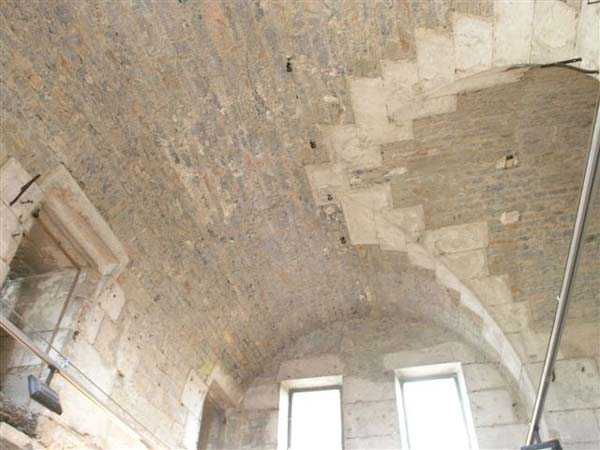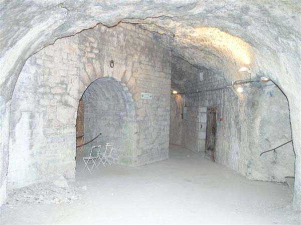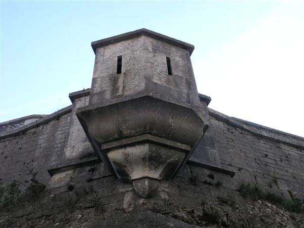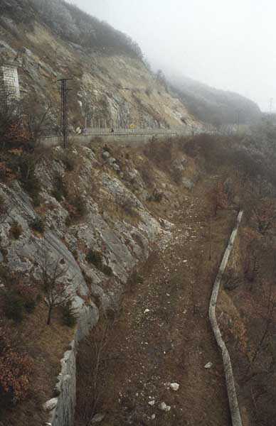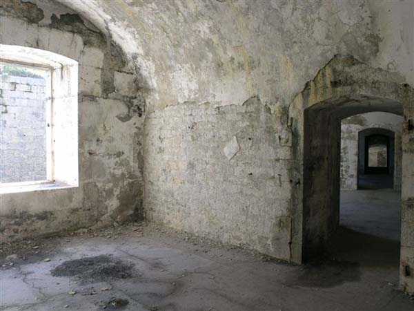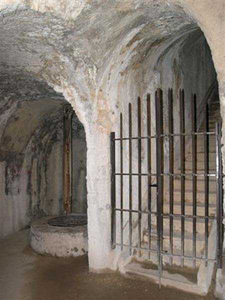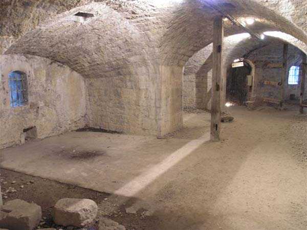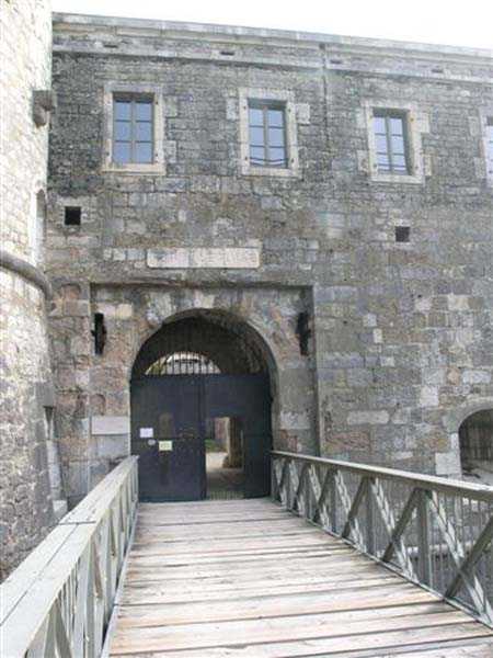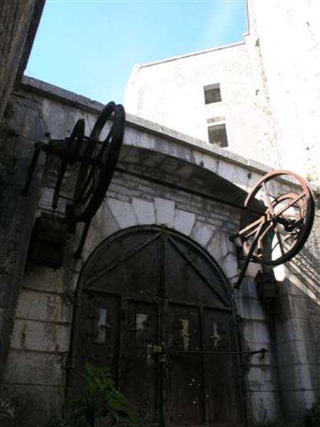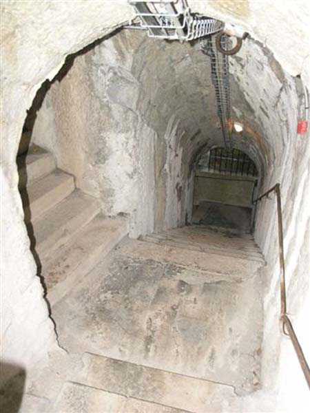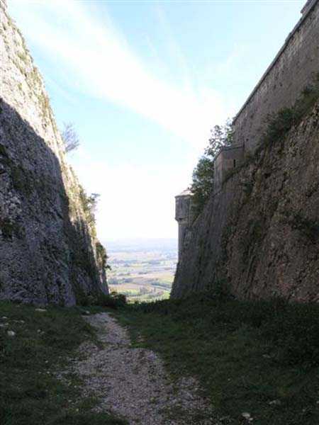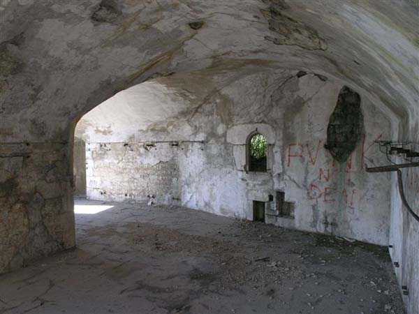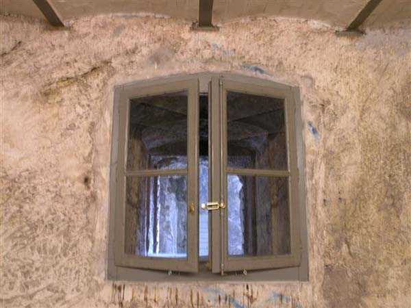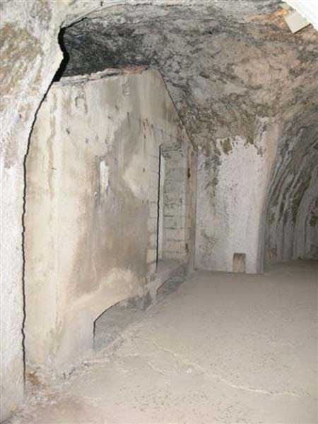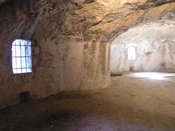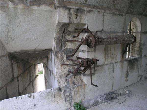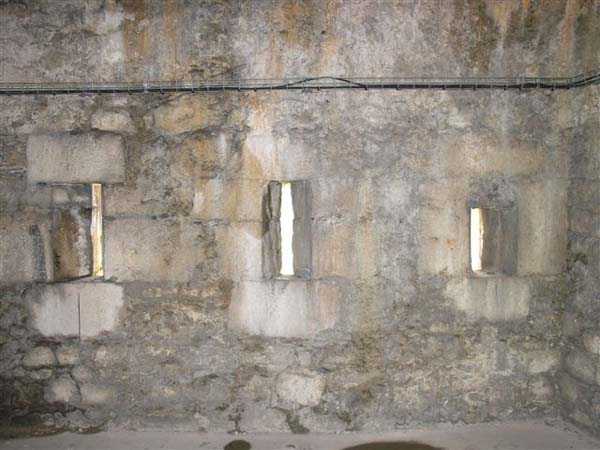 Dept 01 (Ain) Jura curtain. ± 425 m/alt. About 40 km south of the fortress of Les Rousses, this site, occupied militarily since the 13th century, is an important road and railway passage inland from Geneva, a passage used by the Rhône. The name itself is a deformation of "La cluse" and the road, moreover, crossed the 2 drawbridges of the lower fort. The current fortification consists of 2 distinct forts, the Lower and the Upper (or inférieur and supérieur) connected by a gallery dug into the rock, a gallery protecting a staircase of 1,165 steps overcoming a difference in height of about 200 m. The construction of the lower fort dates back to the 17th and 18th centuries but it was dismantled in 1815 and rebuilt from 1816 to 1828. In 1815, France lost the left bank of the Rhône and with it the possibility of fortifying the opposite Mont Vuache (1101 m/alt). The upper fort, for its part, was built from 1834 to 1848 and reinforced from 1885 to 1887. The elements of interest to this index are found in the ensemble formed by the two forts and their junction. The lower fort, whose accesses are controlled by Bélidor drawbridges, underwent few transformations after 1874; in fact, one had to wait until 1886 to see a two-story barracks with four bays dug into the rock at the level of the upper courtyard. This barracks, whose rooms are separated by thick rock piers, includes, on the ground floor, a bread oven, while in the circulation corridor of the 1st floor opens a gallery leading to the Maginot casemate sweeping the road tunnel of the Lyon-Geneva route, a tunnel dug into the rock above the lower fort in 1937. The windows of the rooms and related premises are as many small tunnels dug into the rock. Let us note for the record that an old powder magazine received some fittings including a lamp embrasure as well as the presence of an original mechanism for operating a portcullis and a pretty sundial bearing the motto "Toujours l’ennemi s’use devant le fort l’Écluse". The improvements to the upper fort are clearly more visible. This upper fort is quite complex and includes multiple levels. The most spectacular element is undoubtedly the corner tower of the two ditches (the rest of the perimeter consists of a cliff), a tower whose ground floor, independent of the floors, serves as a double counterscarp casemate. The upper floors can only be reached by a staircase with a cut communicating with the bottom of the ditch. Beyond the cut, a postern gives onto a staircase serving five levels of loopholes before giving access to a firing gallery which itself serves three casemates with reverse fire dug into the rock. The lower floor, the counterscarp casemate, communicates via a staircase passing under the ditch with the upper fort. Note that a second casemate, attached to the scarp of the gorge front, sweeps a third ditch located one level lower than those defended by the tower. This upper fort possesses, from the outset, twice four Haxo casemates distributed over several levels. The fort completed in 1848 had a barracks (1836) in chevron shape whose two wings each aligned three rooms on two levels. The angle of the chevron was occupied by other premises, including the main access staircase, the barracks being located much higher than the fort entrance. The barracks, facing French territory, was not covered. In 1886-87, it was left with a narrow light well courtyard on the flank of which four casemates aimed at Mont Vuache were built. The two inner casemates were devoted to direct fire, the outer ones to indirect fire. The mass of covering earth of these casemates did not reach the height of that covering the barracks, also, in order to be able to armor the ceiling of the courtyard, two enormous cast-iron consoles per room were embedded in the facade of the barracks. The short sides of the courtyard will be arranged as a caponier flank with, which is rare but imposed by the necessity of achieving plunging fire, stepped embrasures. The roof of the barracks is arranged as an infantry position from where the views are splendid and extend to Lake Geneva and the alpine massif. Two of the numerous embrasures of the barracks show a pivot pin with a metal arc sealed in the ground, an arc 90 cm long and sealed 75 cm from the pin. We do not know which mount and which armament could be installed there but similar devices will be spotted in front of some embrasures of the junction. Let us finally note in this barracks a frame of a Vaillant stove, the ruins of a bread oven, two lines of three latrines and a magnificent triple stone sentry box. The highest of the direct fire casemates, located at the level of the fort entrance, singularly includes a sink, a toilet, and a chronogram 1887. It is likely that this is more of a "Séré de Rivières" direct fire casemate than a "Haxo" casemate, given that the architectural differences between the two models are rather tenuous. It is in this casemate that the staircase leading back to the lower fort begins. The junction comprises nine levels of casemates totaling sixteen casemates of which seven are oriented towards Switzerland, five towards Mont Vuache and four downstream. There are also, besides several terraces, a vast cavern shelter for 70 men, a powder magazine, a loading workshop, three magazines for made ammunition and a magazine for 260,000 infantry cartridges. Each casemate level was assigned a number increasing from the upper fort. Thus battery 1 = 1 casemate (upstream), batteries 2 and 3 likewise; battery 4 = 1 casemate (downstream); then the numbers resume at battery 10: 1 casemate but 2 firing directions (downstream and Vuache), 11: 3 casemates (2 upstream, 1 Vuache), 12: 2 casemates with, each, two embrasures (2 downstream, 2 Vuache), no no. 13 and, finally, number 14: 3 casemates (1 Vuache, 2 upstream). It will be understood, each casemate level has its own magazine. These magazines are built in a niche dug into the rock and are therefore independent