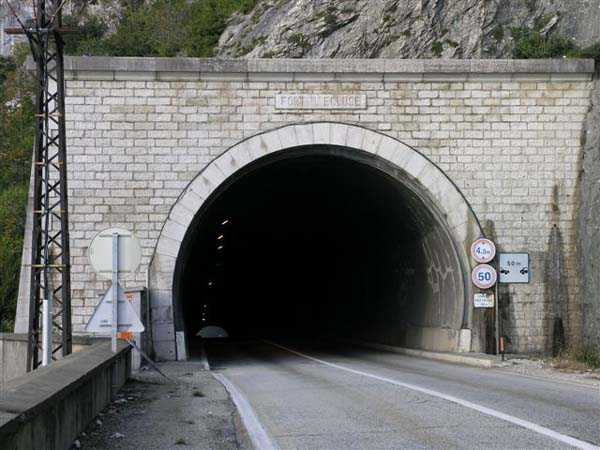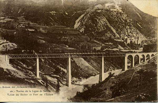 Dept 01 (Ain) Závěs Jury. ± 425 m/n.m. Asi 40 km jižně od pevnosti Les Rousses, toto od 13. století vojensky obsazené místo je důležitou silniční a železniční průrvou do vnitrozemí od Ženevy, průrvou, kterou využívá Rhôna. Samotný název je zkomoleninou "La cluse" a silnice mimochodem překonávala 2 padací mosty dolní pevnosti. Současná fortifikace se skládá ze 2 samostatných pevností, Dolní a Horní (neboli inférieur a supérieur) propojených galerií vytesanou do skály, galerií chránící schodiště o 1 165 stupních překonávající převýšení asi 200 m. Stavba dolní pevnosti sahá do 17. a 18. století, ale byla zbořena v roce 1815 a přestavěna v letech 1816 až 1828. V roce 1815 Francie ztratila levý břeh Rhôny a s ním možnost opevnit protilehlý Mont Vuache (1101 m/n.m.). Horní pevnost pro svou část byla postavena v letech 1834 až 1848 a zesílena v letech 1885 až 1887. Prvky zajímavé pro tento index se nacházejí v celku tvořeném oběma pevnostmi a jejich spojením. Dolní pevnost, jejíž přístupy jsou ovládány padacími mosty typu Bélidor, prodělala po roce 1874 jen málo změn; ve skutečnosti bylo třeba počkat do roku 1886, aby byla ve výši horního nádvoří vytesána do skály kasárna o dvou patrech na čtyřech polích. Tato kasárna, jejichž ubikace jsou odděleny tlustými skalními pilíři, zahrnuje v přízemí chlebovou pec, zatímco v oběžné chodbě 1. patra se otvírá galerie vedoucí k Maginotově kasematě, která kříží silniční tunel trasy Lyon-Ženeva, tunel vytesaný do skály nad dolní pevností v roce 1937. Okna ubikací a příbuzných prostor jsou tolik malých tunelů vytesaných do skály. Všimněme si pro připomenutí, že stará prachárna obdržela několik úprav včetně střílny pro lampu a také přítomnost originálního mechanismu pro ovládání padací mříže a pěkného slunečního ciferníku opatřeného mottem "Toujours l’ennemi s’use devant le fort l’Écluse". Vylepšení na horní pevnosti jsou zřetelně viditelnější. Tato horní pevnost je dosti složitá a zahrnuje více úrovní. Nejefektnějším prvkem je bezpochyby rohová věž dvou příkopů (zbytek obvodu tvoří srázy), věž, jejíž přízemí, nezávislé na patrech, slouží jako dvojitá kasemata kontreskarpy. Horní patra lze dosáhnout pouze schodištěm s přerušením komunikujícím s dnem příkopu. Za přerušením vede poterna na schodiště obsluhující pět pater střílen, než poskytne přístup ke střelecké galerii, která sama obsluhuje tři kasematy s opačnou palbou vytesané do skály. Spodní patro, kasemata kontreskarpy, komunikuje schodištěm procházejícím pod příkopem s horní pevností. Všimněme si, že druhá kasemata, připevněná ke skalpu hrdlového frontu, kříží třetí příkop umístěný o úroveň níže než ty, které brání věž. Tato horní pevnost disponuje od počátku dvakrát čtyřmi kasematami typu Haxo rozloženými na několika úrovních. Pevnost dokončená v roce 1848 měla kasárna (1836) v chevronovém tvaru, jejichž dvě křídla seřazovala každé tři ubikace na dvou úrovních. Úhel chevronu byl obsazen jinými prostory, včetně hlavního přístupového schodiště, přičemž kasárna se nacházela mnohem výše než vstup do pevnosti. Kasárna, obrácená k francouzskému území, nebyla zakrytá. V letech 1886-87 jí byl ponechán úzký světlíkový dvůr, na jehož boku byly postaveny čtyři kasematy namířené na Mont Vuache. Dvě vnitřní kasematy byly určeny pro přímou palbu, vnější pro nepřímou palbu. Hmotnost krycí zeminy těchto kasemat nedosahovala výšky té, která pokrývala kasárna, proto, aby bylo možné pancéřovat strop dvora, byly do fasády kasáren, na každou ubikaci, vsazeny dvě obrovské litinové konzoly. Krátké strany dvora byly upraveny jako flank kaponíry s, což je vzácné, ale vynucené nutností realizovat střemhlavou palbu, stupňovitými střílnami. Střecha kasáren je upravena jako pěchotní postavení, odkud jsou výhledy skvělé a sahají až k Ženevskému jezeru a alpskému masivu. Dvě z četných střílen kasáren ukazují otočný čep s kovovým obloukem zalitým do země, oblouk dlouhý 90 cm a zalitý 75 cm od čepu. Nevíme, která lafeta a která výzbroj tam mohla být instalována, ale podobná zařízení budou zjištěna před některými střílnami spojení. Nakonec si v těchto kasárnách všimněme kostry Vaillantových kamen, ruin chlebové pece, dvou řad po třech latrínách a nádherné trojité kamenné strážní budky. Nejvyšší z kasemat pro přímou palbu, umístěná na úrovni vstupu do pevnosti, zahrnuje zvláštním způsobem dřez, toaletu a chronogram 1887. Je pravděpodobné, že se zde jedná spíše o kasematy pro přímou palbu "Séré de Rivières" než o kasematy "Haxo", vzhledem k tomu, že architektonické rozdíly mezi oběma modely jsou poněkud slabé. V této kasematě začíná schodiště vedoucí zpět k dolní pevnosti. Spojení zahrnuje devět pater kasemat celkem šestnáct kasemat, z nichž sedm je orientováno na Švýcarsko, pět na Mont Vuache a čtyři po proudu. Nacházejí se zde také, kromě několika teras, rozsáhlý jeskynní úkryt pro 70 mužů, prachárna, nabíjecí dílna, tři sklady hotové munice a sklad na 260 000 pěchotních nábojů. Každé patro kasemat obdrželo číslo rostoucí od horní pevnosti. Tedy baterie 1 = 1 kasemata (po proudu), baterie 2 a 3 stejně; baterie 4 = 1 kasemata (proti proudu); poté čísla pokračují u baterie 10: 1 kasemata ale 2 palebná zaměření (proti proudu a Vuache), 11: 3 kasematy (2 po proudu, 1 Vuache), 12: 2 kasematy s, každá, dvěma střílnami (2 proti proudu, 2 Vuache), č. 13 žádné a, konečně, číslo 14: 3 kasematy (1 Vuache, 2 po proudu). Bude pochopeno, každé patro kasemat má vlastní sklad. Tyto s