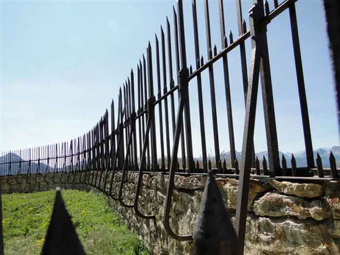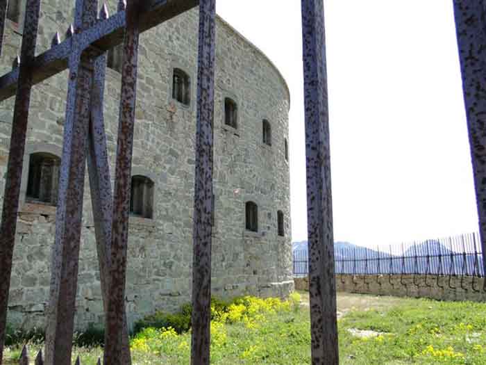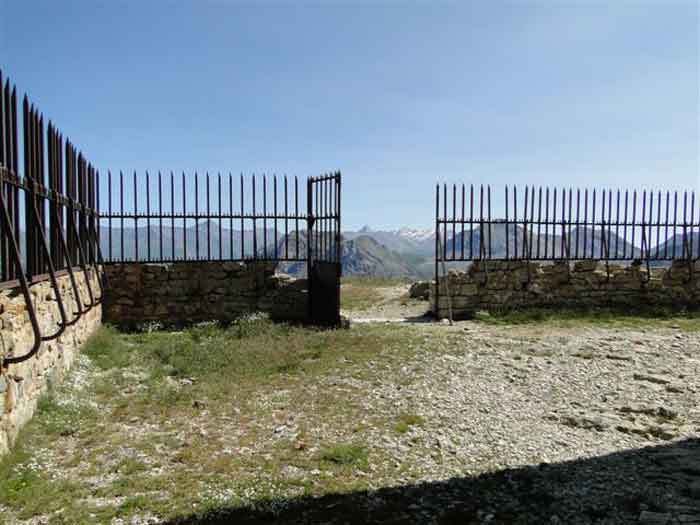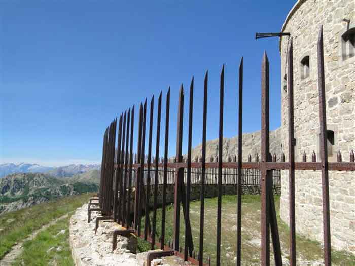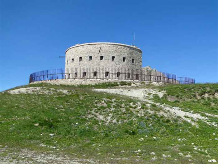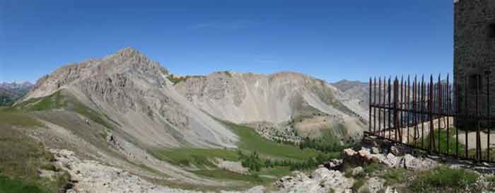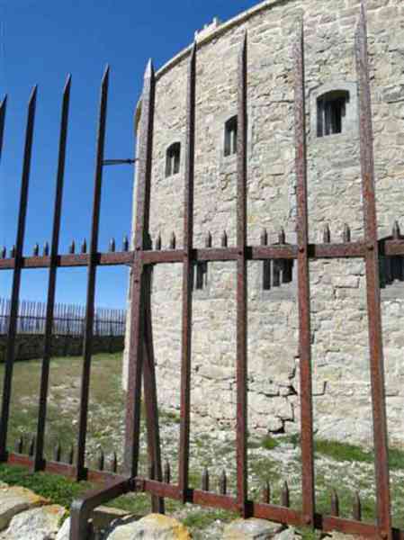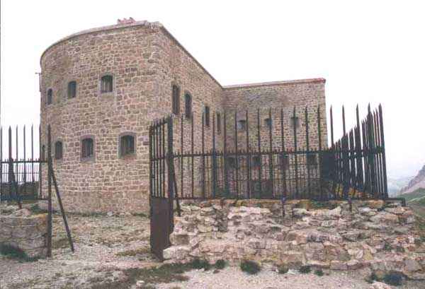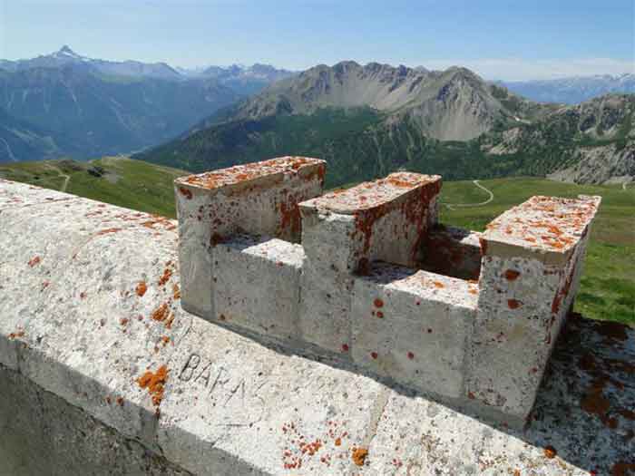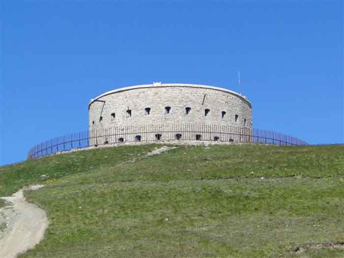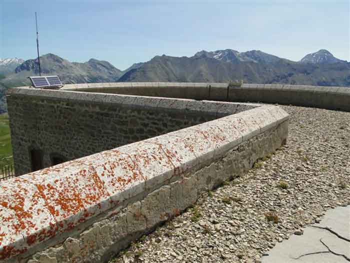 Fortress of Briançon, 10 000 m north of the town, 1891-1893. 2 508 m alt. Located at the highest point at the crossing of the ridges of Lenlon (west), the Ruins (north-east), and the Ruins of Drouvet (south-east), it is an infantry work for 80 men, intended to monitor the entire Lenlon position as well as the rear of the fort of Olive. Its good views obviously give it a leading role as an observatory. The work takes the form of a horseshoe having only the right branch, backed against a steep drop on the north-east side (chance of genesis, the Lenlon blockhaus is thus turned towards the Chaberton built later!), a particular shape that earned it the nickname of "fort Boyard of the mountains" so striking is its resemblance to the famous defender of Rochefort. Beyond the aesthetic aspect, it was the climatic conditions that dictated the choice of architecture: indeed, thus channelled, the violent winds that reign in these places are capable of blowing away the heavy layer of snow usual at this altitude (3 to 4 m, at least in those not so distant times when we had real winters). The perimeter is defended by a defensive grid, with the exception of the north-west side where rocky escarpments prohibit any approach. Access is through a gate opening in the defensive grid, a gate that leads to a small courtyard created by the setback of the north-west facade and where the entrance is located, closed by a solid door. Inside, the majority of the two levels is occupied by inclined bunk beds on which the garrison slept. A single Turkish toilet is on the ground floor. Three other rooms, stores and officer's room, occupy the left of the ground floor for two of them and the third on the left of the floor. The cistern, the only element in the basement, and the staircase leading to the floor are located in the centre of the semi-circle. The wooden posts, supporting the landing of the first floor, are covered with words engraved by the troops who spent part of their time under the flags there. Given its isolation and the living conditions made precarious by the altitude and continuous winds, the command had made it the quarters of the disciplinary company of the place. The summit terrace is accessible only by a simple trapdoor and has no facilities to deduce its possible occupation as a firing post. The work included of course no artillery. Its defence was ensured from about sixty firing embrasures, distributed on two levels. Sold in the 1960s for the modest sum of 10,000 francs (€1,500) it remains today (07/2011) private property. Although carefully closed, it is left abandoned and would even be for sale again. The armoured shutters of the rare windows are in place and, something almost unthinkable, the glass blocks that the owner placed behind each embrasure to protect the interior have, almost all, been the target of stone throws. Singular customs of our time… That aside, the interior is more than acceptable even if a fungicidal treatment of some woods and beams should be considered quickly. The masonry as well as the defensive grid remain, however, in a remarkable state of preservation. It should also be noted the extreme richness of the flora in the surroundings, flora which, compared to that of the Gondran ski area located at a similar altitude, proves incredibly more diversified. Sometimes designated as "fortin". Formerly spelled "l'Enlon".