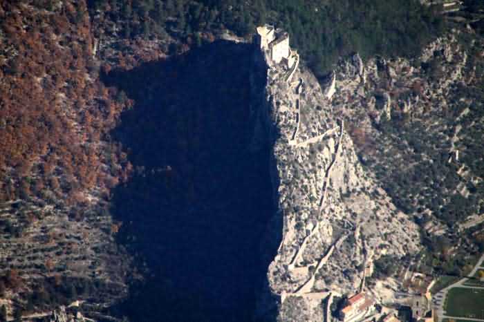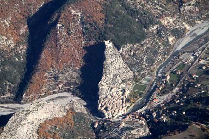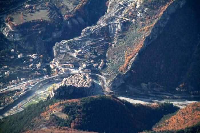 Dépt 04 (Alpes-de-Haute-Provence). Vieille place évoquée dans une note de l'état-major général du 3 décembre 1888 qui prescrit de la classer dans la 3e catégorie de la loi de 1791. Deux de ses composants, les forts Langrune et Pandol, furent respectivement baptisés fort Laharpe et fort Pérignon par le décret du général Boulanger. Entrevaux est une ville fortifiée de taille très modeste, blottie dans la haute vallée du Var et surmontée d'une antique forteresse en équilibre sur un piton rocheux. Vauban n'eut que peu de latitude pour l'améliorer. Son chemin d'accès comprend de multiples traverses visant autant à protéger la circulation sur ce chemin qu'à empêcher l'ennemi d'y distinguer les mouvements. En 1888, le Conseil Supérieur de la Guerre note à son sujet qu'elle est impossible à détruire et pouvant servir dans l'avenir à la protection de la voie de fer (sic) de Digne à Nice. Le 19 août 1908, une dépêche ministérielle prévoit un armement permanent de deux canons de 80 de campagne au château surmontant la ville. À l'état des bouches à feu affectées à la défense de terre de la place de Nice et daté du 1er janvier 1913, ces deux canons sont toujours mentionnés comme bel et bien présents. Cette cité est un réel petit bijou et nul ne regrettera le détour.