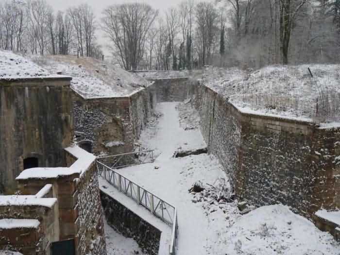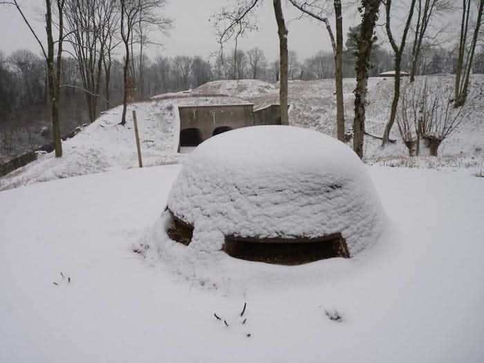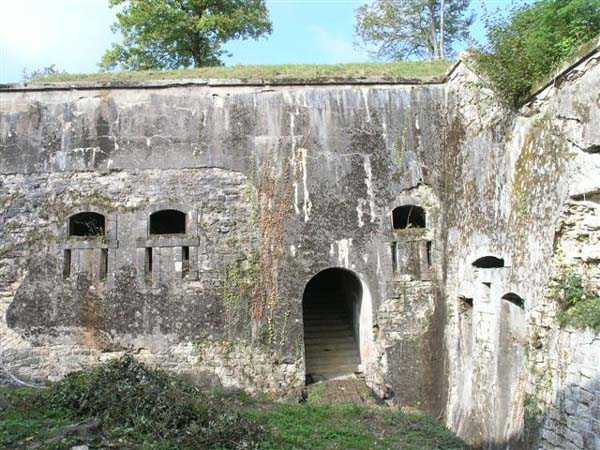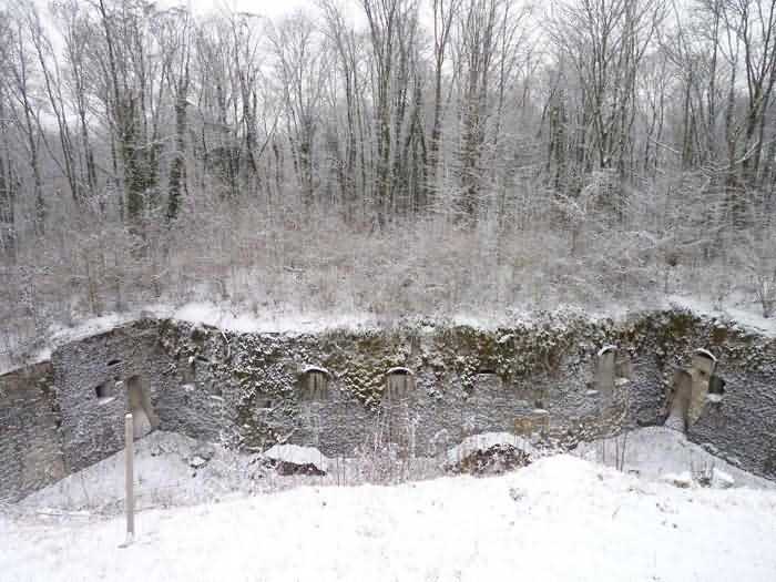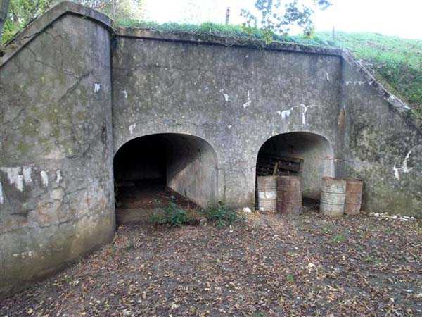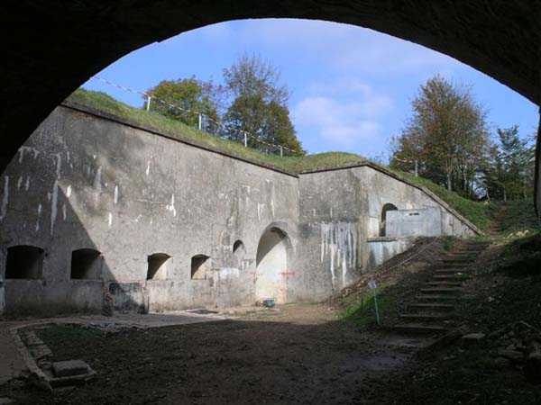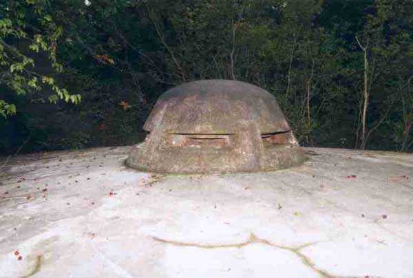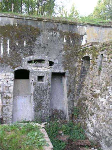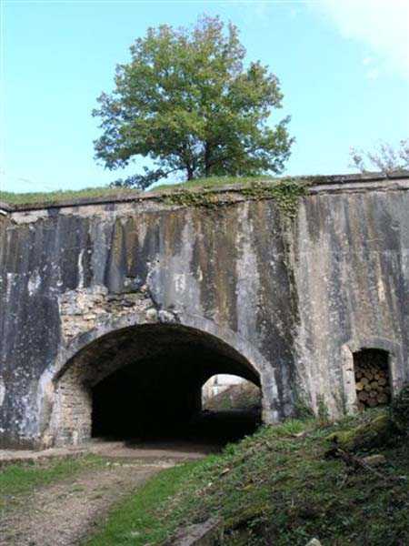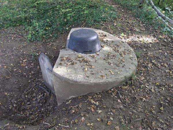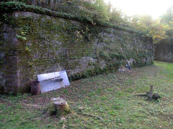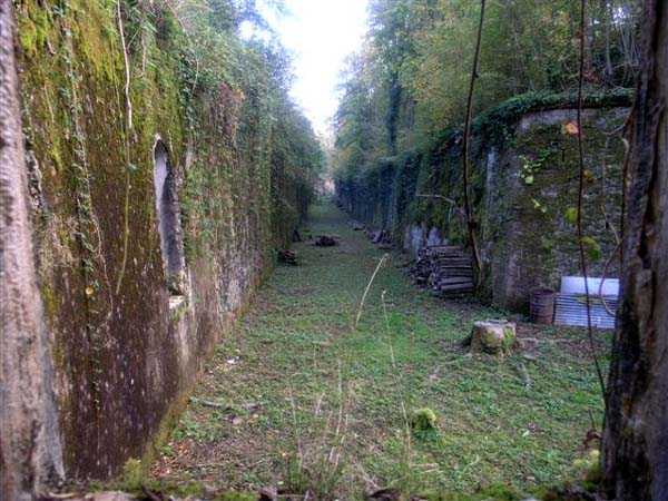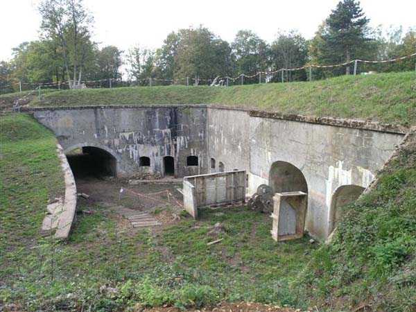 Northwest of Nancy, northeast of Fort Frouard. 320 m/alt. 1879-1883. 201 men, 17 guns including 4 mortars. For fans of fortifications, the Éperon battery is one of the must-see sites that should be visited; the surviving armor alone fully justifies it. Before getting there, let's set the scene. The battery occupies the northern end of the Lattier Park plateau, which, along with Fort Frouard and several annex batteries, forms a solid obstacle on the route of any invader whose intention would be to surround Nancy or advance up the Moselle Valley. Vaguely triangular in shape, the Éperon battery has the primary distinction of having practically no symmetrical features. While the rampart street is usually parallel to the fronts, the barracks parallel or perpendicular to the gorge, here everything appears at an angle. A ravelin with a crenellated guardhouse precedes, on the glacis, the entrance to the battery. This, more or less, opens at the bottom of the ditch but is preceded by another, narrower ditch, extending laterally. A break, almost in the center of the gorge ditch, determines a withdrawal, like a curtain wall, but this withdrawal is also broken and the angle of the break is located at the junction of the extension of the escarpment lines. Lateral coffers, designated "flanking casemates" in a ministerial dispatch of May 12, 1893, cross their fire to protect this gorge while the rest of the perimeter is defended by a wing at salient II and a double counterscarp coffer at salient III. Although the battery underwent many modifications and the issue is a matter of debate within the existing association, in our opinion, this box in no way replaces a double caponier. In its initial configuration, the battery included three infantry capons (salients I, III and IV) and the upper parts of the barracks were also organized into an infantry crest. These upper parts had a total of five artillery platforms, at least three of which were designed for a 155 L gun. Three faced northwest, one north and one east. Two armored casemates made of hard cast iron Mle 1878 supplemented the battery's fire, through the action of their 155 L, in the valleys of the Moselle and Amezule. The barracks, composed of two lines of three facing each other, received daylight through three skylights aligned in the capital. These shafts will later be concreted and narrowed…at least that's what we think we can deduce by looking at them. In reality, originally, there was indeed a courtyard in the barracks. The ministerial dispatch already cited specifies: "The vaults of the casemates would be extended across the courtyard to accommodate the shell while creating a central corridor in the extension of the vaulted passage of the entrance. To light and ventilate the barracks, the vault of the corridor would be pierced opposite each jamb." The masonry connections are therefore not to be found at the limits of the bays, but rather inside them since they have been extended (the trained eye will distinguish a difference in the dimensions of the rubble used). Indeed, the overhaul of the battery would require an increase in personnel of around a hundred men, and although it was planned to house the surplus in shelters distributed throughout the structure, any space saved in the barracks was therefore appreciable. Apart from the barracks courtyard, the battery only includes two other small courtyards. The first is beyond the two pilasters of the entrance, which entrance is offset towards the left chest of the gorge, and the second is behind salient IV. The battery would soon undergo major upheavals. In January 1894, the green light was given to install the Galopin Mle 1890 turret, initially planned to replace the Mougin turret of the Frouard fort. The rampart street was completely reorganized with the replacement of the shelter traverses by four double concrete shelters for eight 95 mm guns. The trunk and the wing as well as the barracks will be protected by a two-meter thickness of concrete, reduced to 150 cm for the access shafts. The armament of these organs will be four 12-pounder cannons and five revolver cannons. The four 12-pounder cannons will all be placed in the head trunk. The firing pattern of this vault is very surprising. The escarpment of salient III being cut, two of the 12-breech guns cross their fire at 45° on this intersection, which gives them a field of fire with a maximum depth of around thirty-five meters and barely twenty to the center of the cut escarpment. We bet that the only ammunition allocated to them consisted of boxes of grapeshot. The powder magazine, initially planned for 42,000 kg and located to the left of the barracks, will become, after concreting and serious reduction of the storage space, an artillery equipment store. The vault of this magazine is today in the shape of a basket handle. In 1894, armored observation towers will be installed behind salients II, III and IV. Those of salients II and IV will, in principle, be subordinate to the armored casemates. Thus, of the ten casemates ever installed in France, those of the Éperon were the only ones to benefit from the services of armored observation posts. In 1897, it was the head box that was reinforced. It was not until 1902 that the gorge front was also somewhat reinforced (flanking casemates) and a narrow war entrance was pierced in the escarpment in front of the right box of the escarpment. The same year, three observation sentry boxes were installed on the infantry parapets above. In 1903, grilles were installed at the top of the counterscarp. In 1912, it was the turn of the freight elevator for the underground magazine. This magazine is accessible by a ramp-staircase of approximately 80 steps opening at the rear left of the barracks. The masonry of the walls and vault of this staircase is particularly attractive due to the use of rubble of different types. At the foot of the staircase, one emerges into an unusually large space. A shaft f