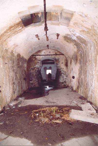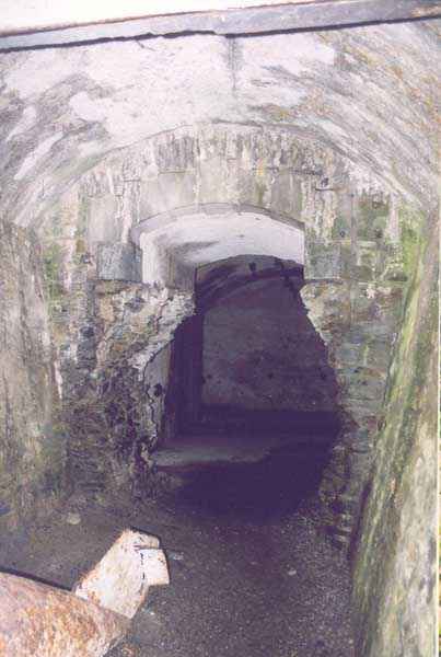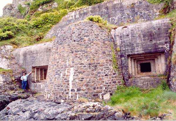 Fortress of Brest, Roscanvel Peninsula, 1888. A first project, in 1882, provided for no fewer than 6 32 c guns, 5 of which were under casemates. Only two were installed and the remaining 3 were distributed between the Pourjoint and Robert batteries. This battery was armed with two 32 c naval guns, model 1870-84, firing at sea level. It is accessed from the lower Vauban battery by two flights of stairs (16 & 24 steps). Its layout is identical to the other breaching batteries in the strait, namely a powder magazine near the entrance, followed by the two large gun casemates. The embrasures, destroyed during the removal of the guns in 1915, have now given way to two facades with firing loopholes, concreted by the Germans. Note that the observation post for this battery is located a few meters to the left of the tourist viewpoint, at the top of the cliff. Access to this battery is free and very easy. See the position of Pointe des Espagnols.