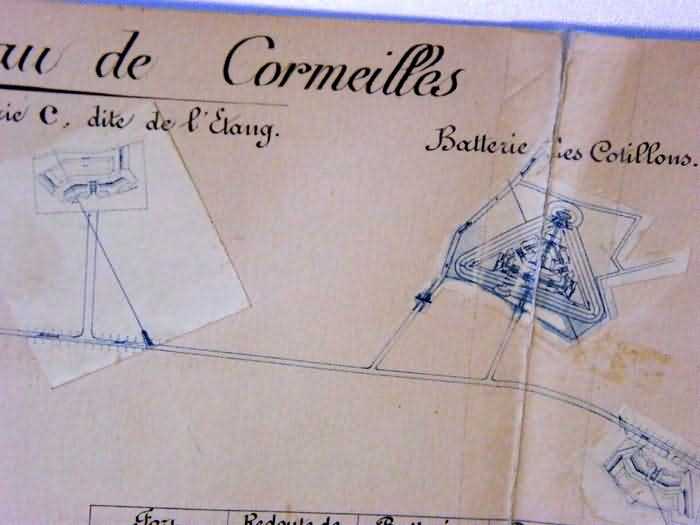 Vesting Parijs, ten noordwesten van de stad, annex C van het fort van Cormeilles, 1875-1876. Gelegen tussen de batterijen van de Cotillons en de Moulin de Risquetout. Kleine batterij voor 4 kanonnen, gemaakt van een aarden wal en een of twee traversen. Tegenwoordig staat er nog één over, in zeer slechte staat.