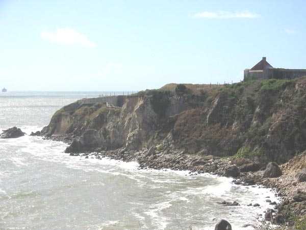 Dept 44 (Loire-Atlantique) Saint-Nazaire, upstream from the Ville-ès-Martin battery, 1891-1895. The accommodation casemates were constructed in concrete. 4 guns 240 mm G Model 1884 and 4 guns 95 mm Model 1888. A rock magazine whose access stairway is a ramp stair. On the point ahead of the 240 mm battery was a 150 cm projector. Protected the Loire estuary and crossed its fire with the Pointeau battery. Site modified by the Germans during the Second World War. Today military terrain.