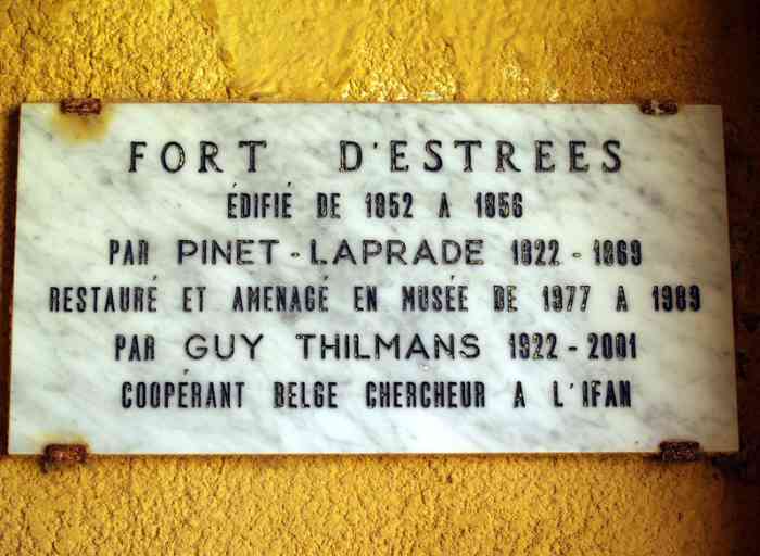 V roce 1852 je velitel Pinet-Laprade, náčelník ženistů pro Senegal, pověřen stavbou baterie na severním výběžku Gorée. Na tomto místě se tehdy nachází pouze jednoduchý zemní val. Plán díla vypracoval již v roce 1849 v souladu se směrnicemi výboru pro opevnění kolonií. Tato přízemní baterie bude protějškem těch na Castelu, které vedou bombardovací palbu. Je pokřtěna pevnost d'Estrées. Je to uzavřená baterie kruhového tvaru s obranným reduitem. Navržena pro dvanáct děl těžkého kalibru, dostává svou výzbroj od roku 1856. Ale tehdy jí lze přidělit pouze pět 22cm kanónových houfnic. V roce 1870 je baterie vyzbrojena dvanácti 16cm děly vz. 1858-60. V roce 1897 je pevnost vyzbrojena již pouze čtyřmi 47mm děly TR, úkol těžkých kusů přebírá baterie Severní castelu. Již není uvedena ve stavu výzbroje z roku 1914. V roce 1939 dostává sekci obrany průplavů, vyzbrojenou dvěma 75mm děly vz. 1897 na polní lafetě upravené pro pobřežní střelbu a kulomety. V září 1940 jeden z nich střílí na motorový člun parlamentářů vyslaných generálem de Gaullem. Přibližně ve stejné době byla 75mm děla nahrazena třemi 90mm děly vz. 1877 na lafetě 1916. Ty ve východní sekci, umístěné poblíž, jsou nahrazeny dvěma stejnými děly, která budou střílet na britské lodě. V roce 1942 je na pevnosti a kolem ní instalována baterie čtyř 75mm protiletadlových děl vz. 1922. V dnešní době pevnost ukrývá muzeum. Deset 16cm děl vz. 1858-60, vylovených na úpatí útesu Castelu, je instalováno na dělostřelecké platformě. Na esplanádě před pevností je stále přítomno asi tucet hlavní a dva kusy lafet. Zde jsou podrobnosti: