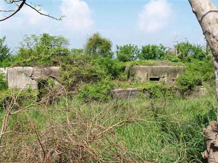 Former Battery B, Cape Saint-Jacques, located 220 m south-south-east of the right battery of the Grand Eperon. A first battery was established at this location as early as 1892. This work, which is part of the Grand Eperon group, is located 300 metres south-east of the previous one. It is armed, like it, with four 270 mm G mortars Mle 1889 on PC carriage. Of relatively simple design, it is equipped with an underground powder magazine and a protected projectile magazine. Part of its allocation is stored in the magazines of battery A. A rangefinder post was established at level 180. Like its neighbour, the battery was completely remodelled in the years preceding the First World War. Its equipment, placed on G carriages with circular chassis, was installed in a modern reinforced concrete work, comprising four emplacements separated by combat shelters Mle 1901. Unlike its neighbour, the battery lacks a fire control post. Like it, it was disarmed during the First World War, and its equipment sent back to mainland France. The site was not reused in 1939. Nowadays, it is freely accessible, but quite overgrown. JJM 03/07/2008